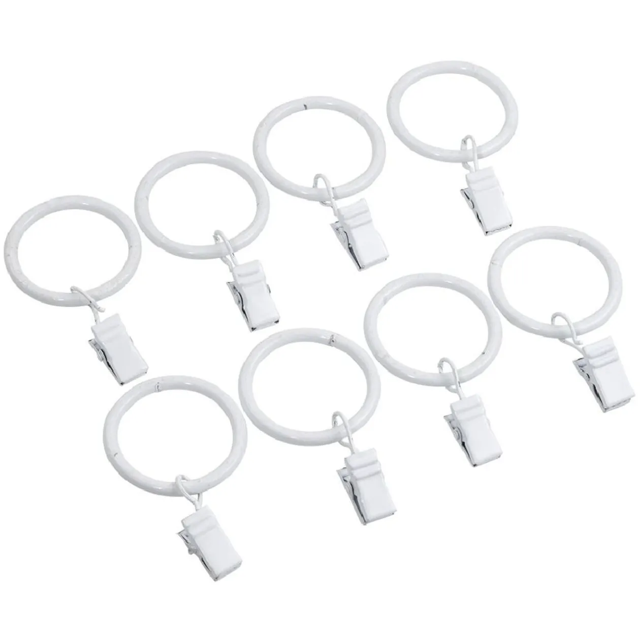 Lot de 8 anneaux à pince de couleur blanche pour suspendre vos rideaux.