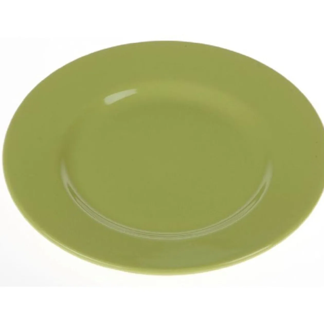 Assiette à dessert ronde vert anis diamètre 20 cm en faïence. Vendue par 4. Prix à l’unité.