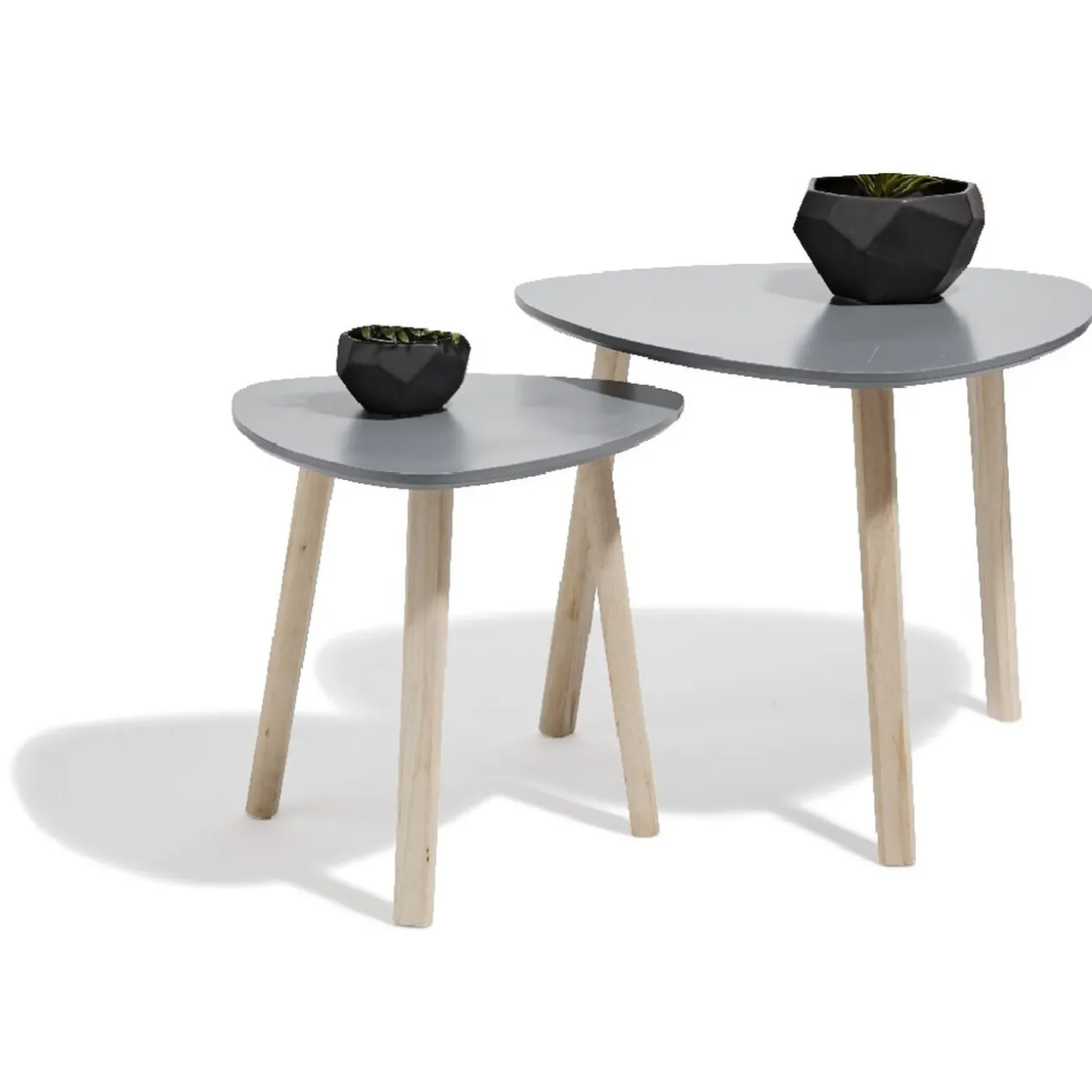 Avec notre lot de deux bouts de canapé anthracite Emma, vous habillerez votre salon avec non pas un, mais deux meubles tendance et fonctionnels. Il n’y a pas plus pratique pour poser vos affaires ou des objets de décoration. Vous aurez ainsi votre verre, vos lunettes et un livre à proximité une fois assis dans votre canapé ou votre fauteuil. Ou alors, vous laisserez parler votre créativité en disposant avec soin des bouquets de fleurs, des miroirs de table ou des bougeoirs sur ces deux meubles. Séparés ou l’un à côté de l’autre, ils proposent une alternative intéressante en matière de petite table d’appoint. Ils se plieront à vos envies et vos besoins, tout en créant une atmosphère détendue et moderne. Leurs trois pieds en pin vernis donnent une touche de naturel. De plus, la forme légèrement arrondie de leurs plateaux les aide à s’accorder aisément avec le reste de votre mobilier.