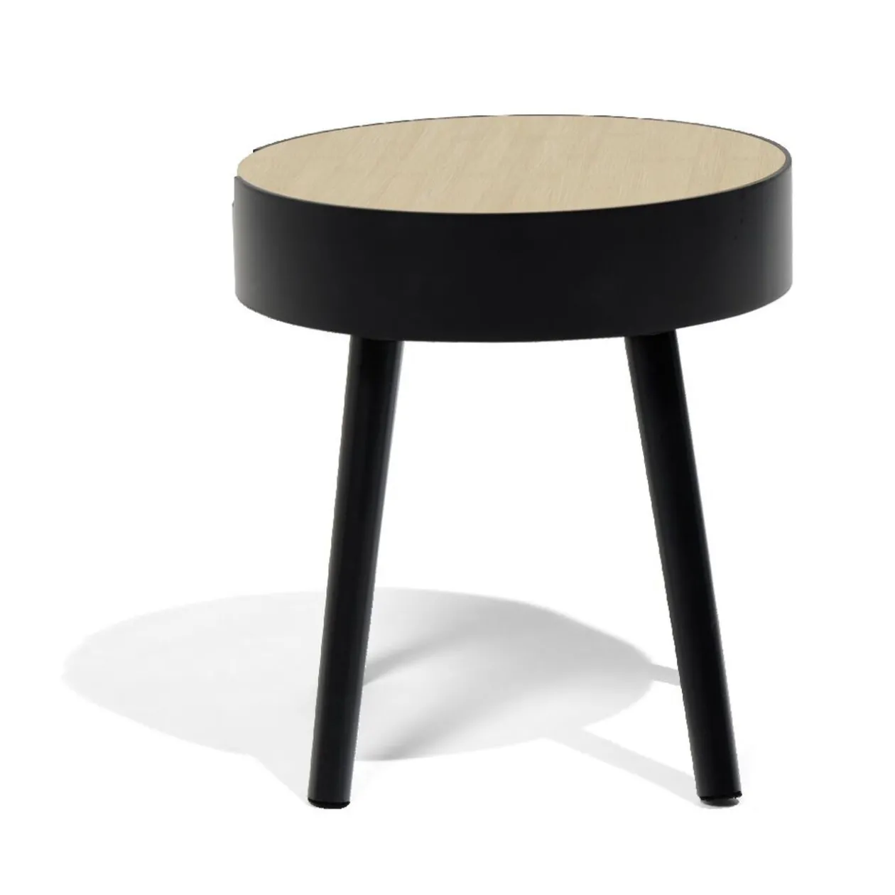 Ce bout de canapé Mathieu incarne l’élégance contemporaine avec son design en bois naturel et noir.