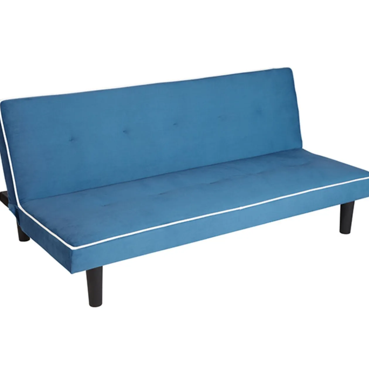 Canapé convertible bleu et blanc, dim. 169x89x75 cm, polyester.