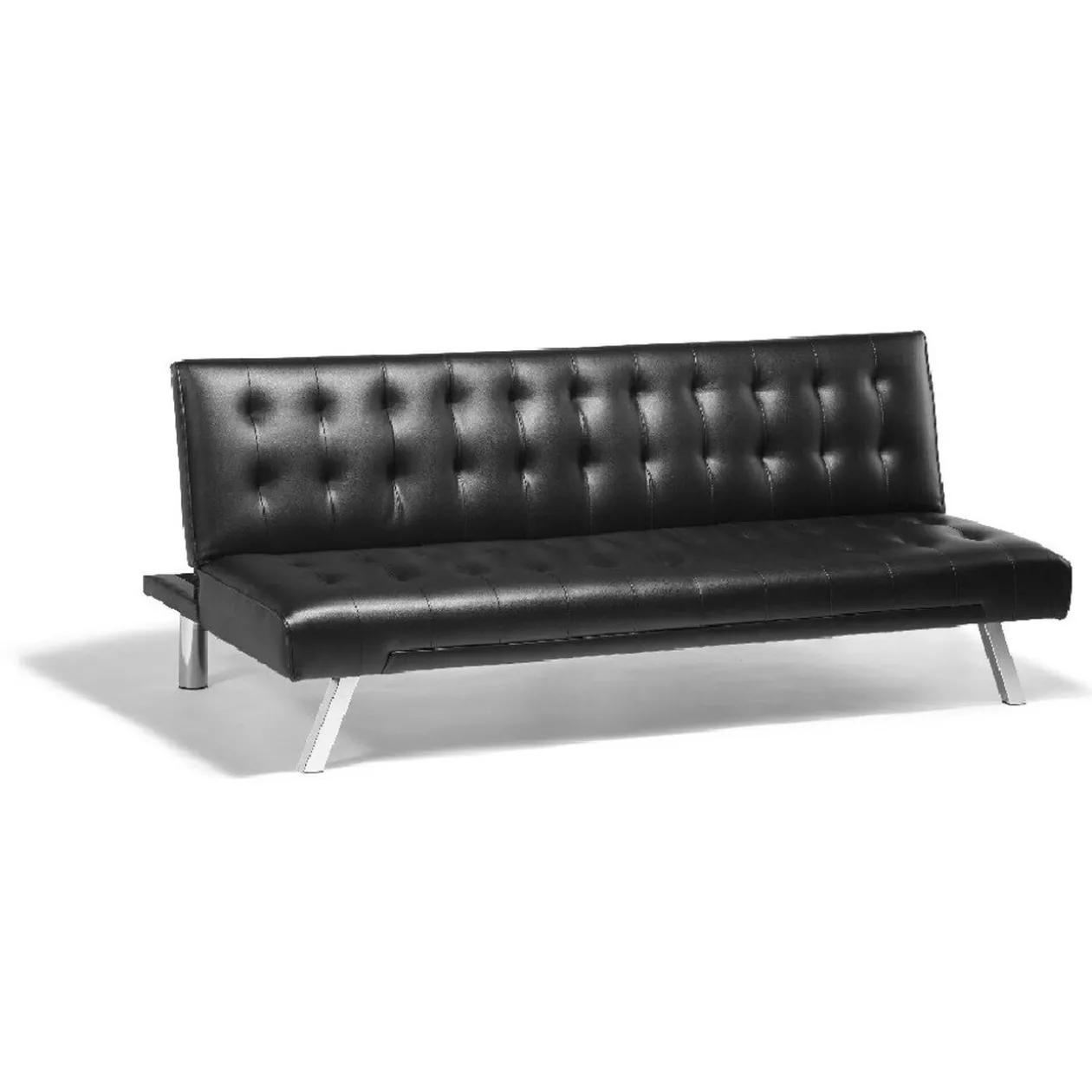 Canapé lit noir, dim. 180x73x82 cm, polyurethane.
