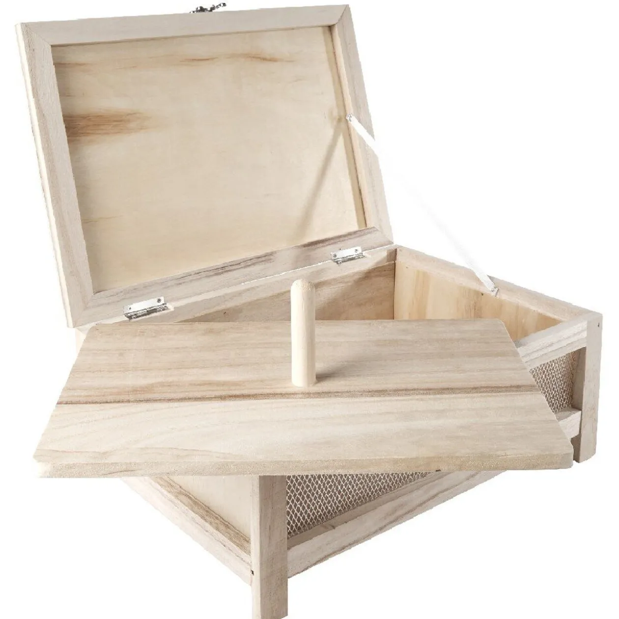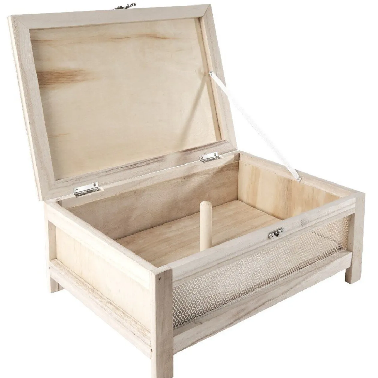Cette mini cave à en bois avec grille d’aération et couvercle refermable vous permettra de conserver vos fromages préférés à l’abri des insectes et autre petites bêtes.