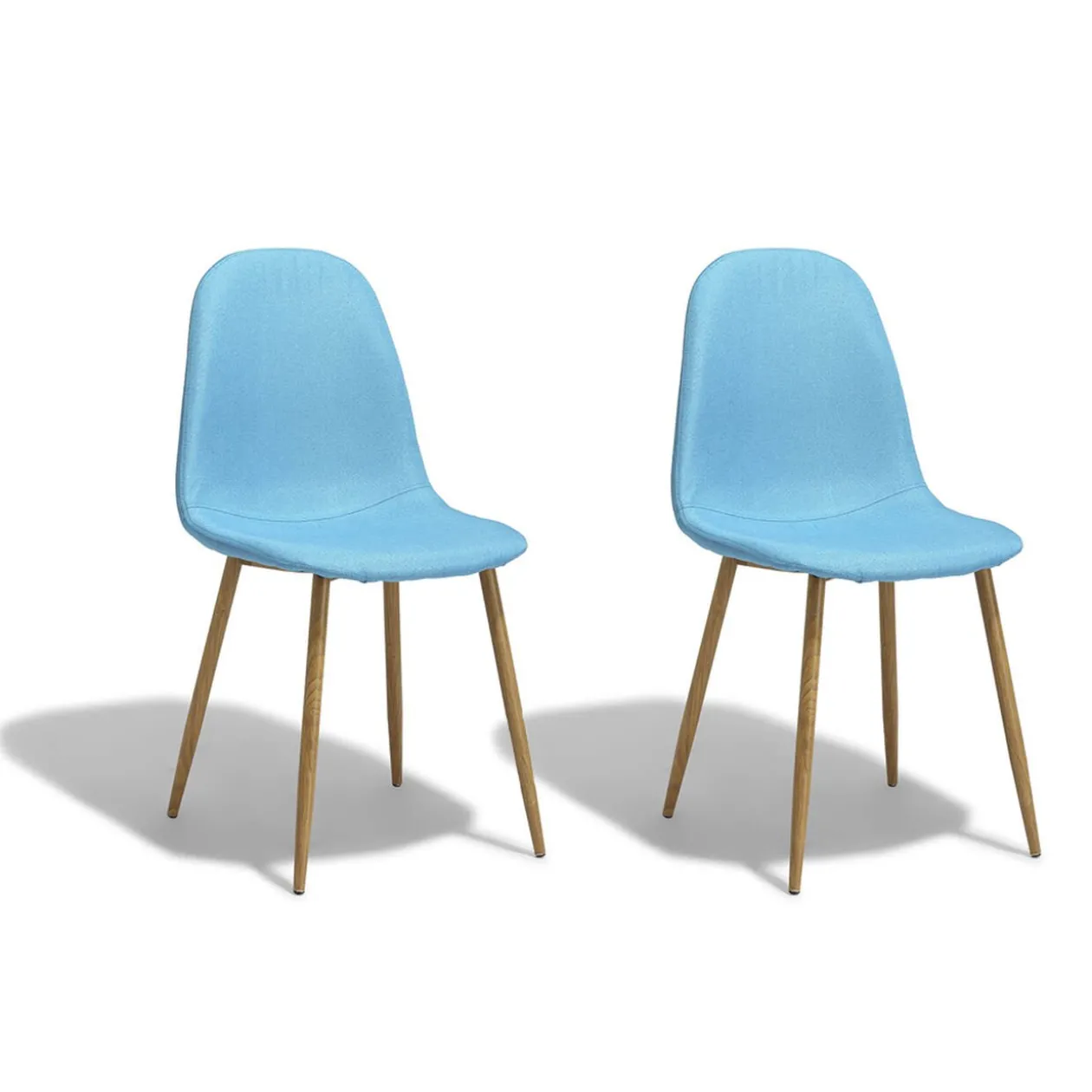 Installez chez vous les chaises Gaby et passez des moments accompagné de votre famille ou de vos amis ! Vendus par lot de 2, ces sièges sont parfaits pour se placer devant une télévision, que ce soit dans votre chambre comme dans votre salon. Grâce à leur couleur bleu ciel, placez-les au milieu de décorations colorées : ils apporteront de la sobriété et agrandiront votre pièce. En contreplaqué, l’ensemble est revêtu de polyester. Grâce à la mousse de polyuréthane qui rembourre le tout, ces chaises sont d’un confort optimal. Les pieds en métal qui soutiennent le tout sont entourés de papier décor, apportant une touche esthétique en plus. Grâce aux chaises Gaby, passez des moments conviviaux entouré de vos proches !