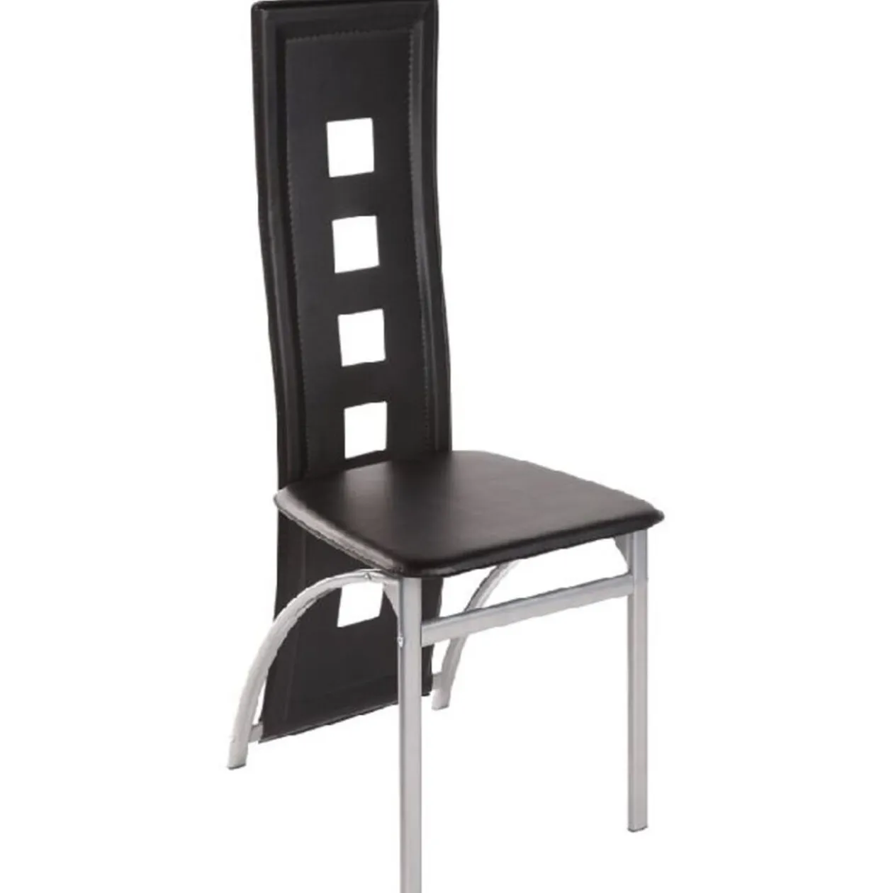 Chaise « opale », dim. 42x52x107 cm, structure métal, finition peinture polymère, assise et dossier panneaux de fibres de moyenne densité, éponge recouverte de PVC.