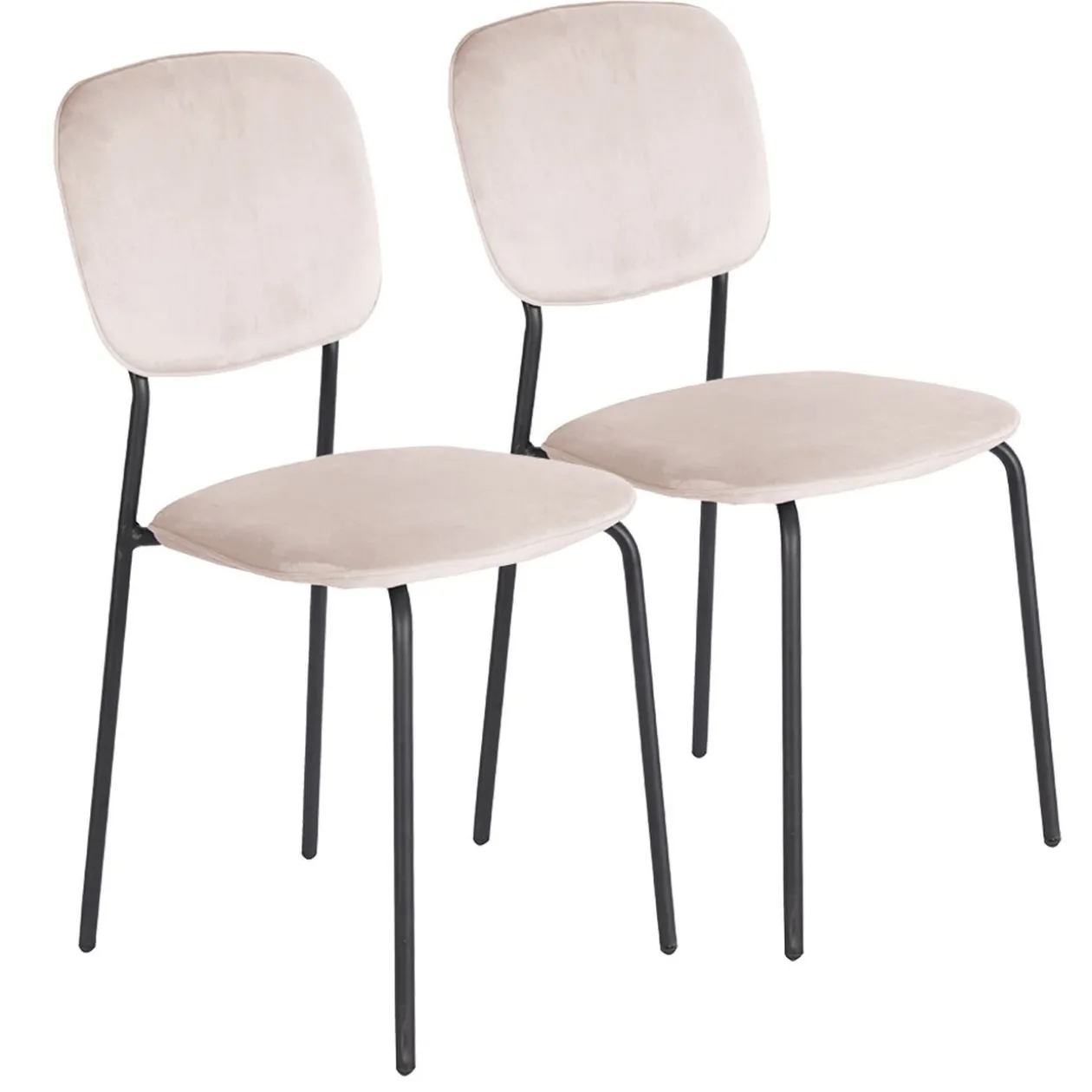 Rendez votre décoration d’intérieur subtilement chic avec ce lot de deux chaises Morgane au toucher velours de couleur rose avec pieds en métal noir.