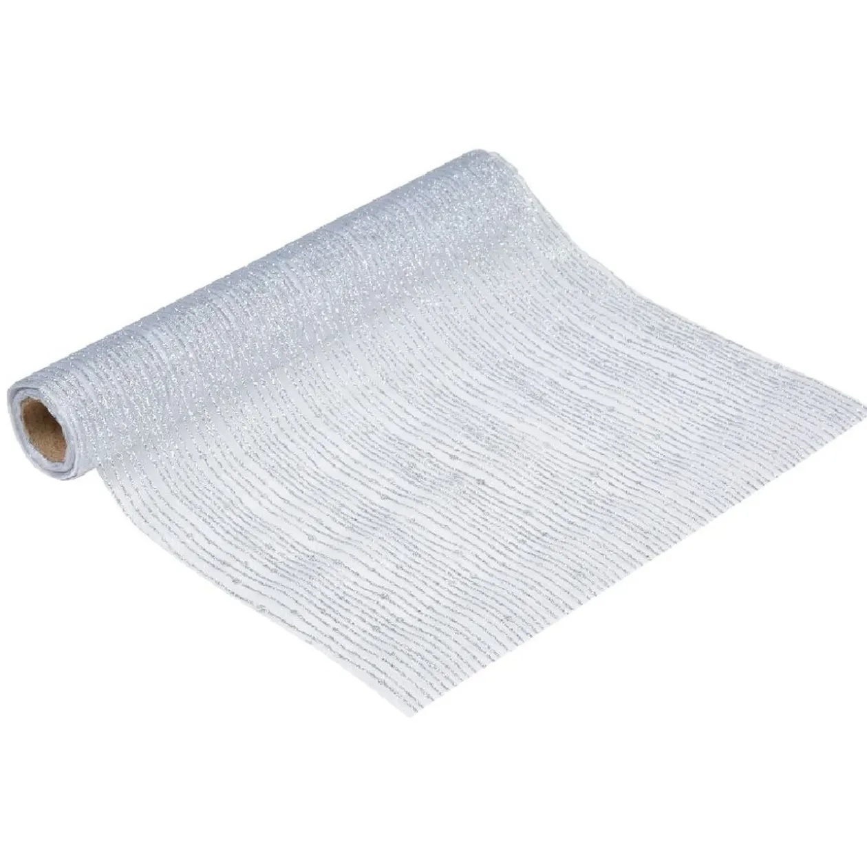 Chemin de table à paillettes argentées, idéal pour apporter un côté festif à votre décoration de table.