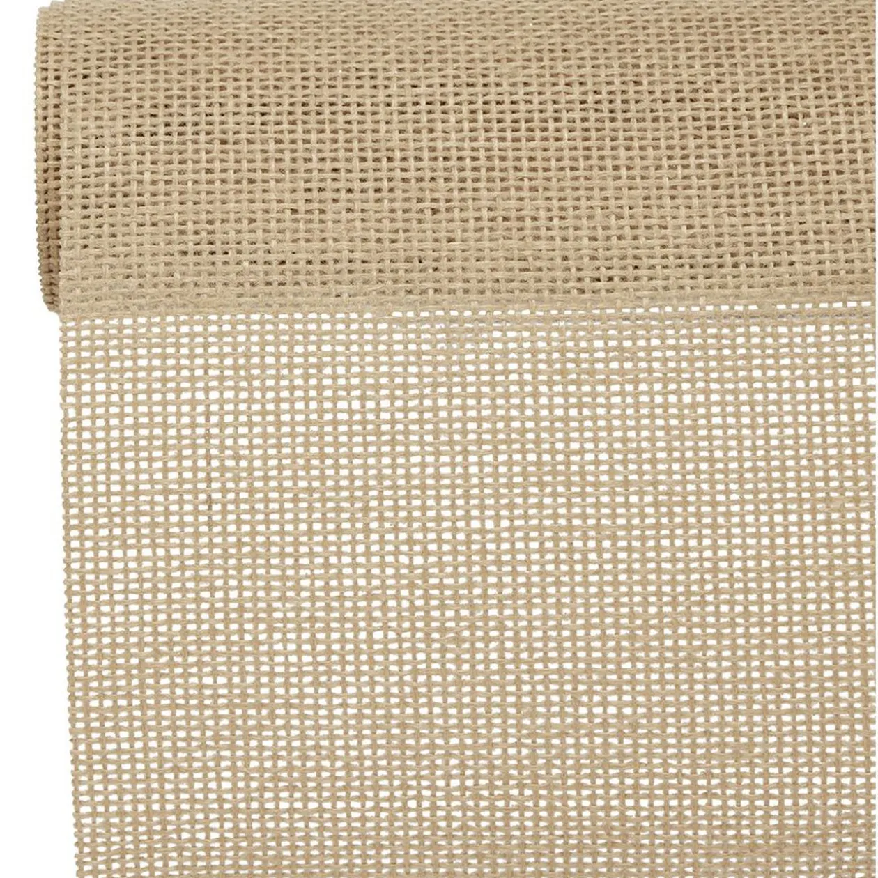 Chemin de table effet jute, idéal pour apporter une touche naturelle à votre décoration.