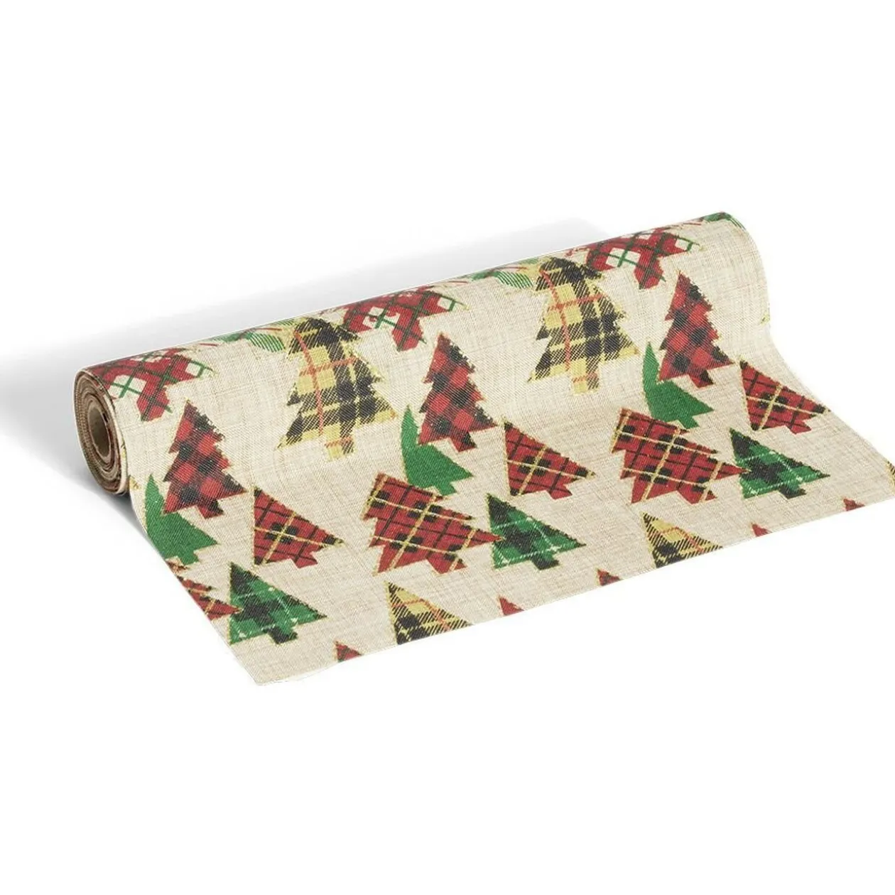 Si vous souhaitez ajouter une touche déco champêtre à votre table de Noël, optez pour ce chemin de table en polyester effet jute.