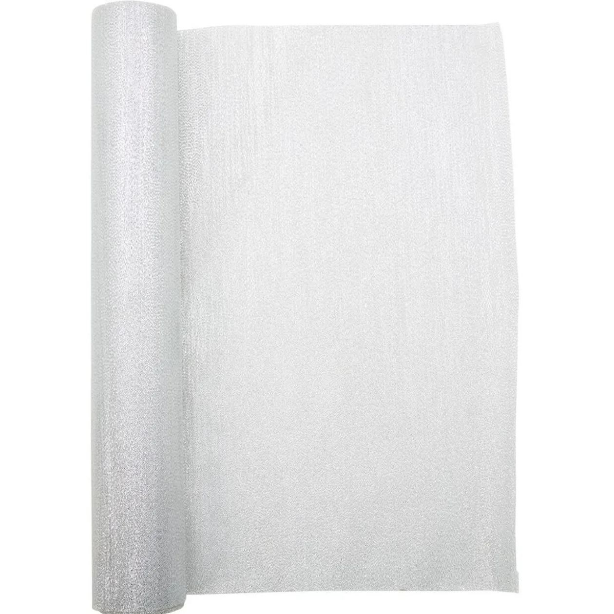 Chemin de table en tissu uni argenté irisé pour inviter l’ambiance des fêtes à votre table de fin d’année.