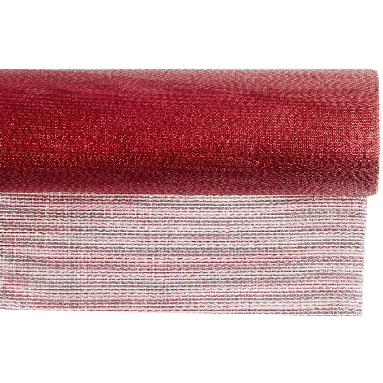 Chemin de table en tissu uni rouge irisé, idéal pour inviter l’ambiance des fêtes à votre table de fin d’année.