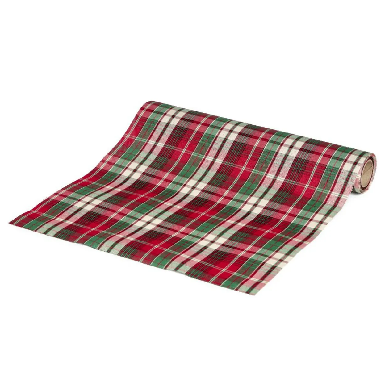 Ajoutez une note chaleureuse à votre table avec ce chemin de table au motif tartan rouge et vert.