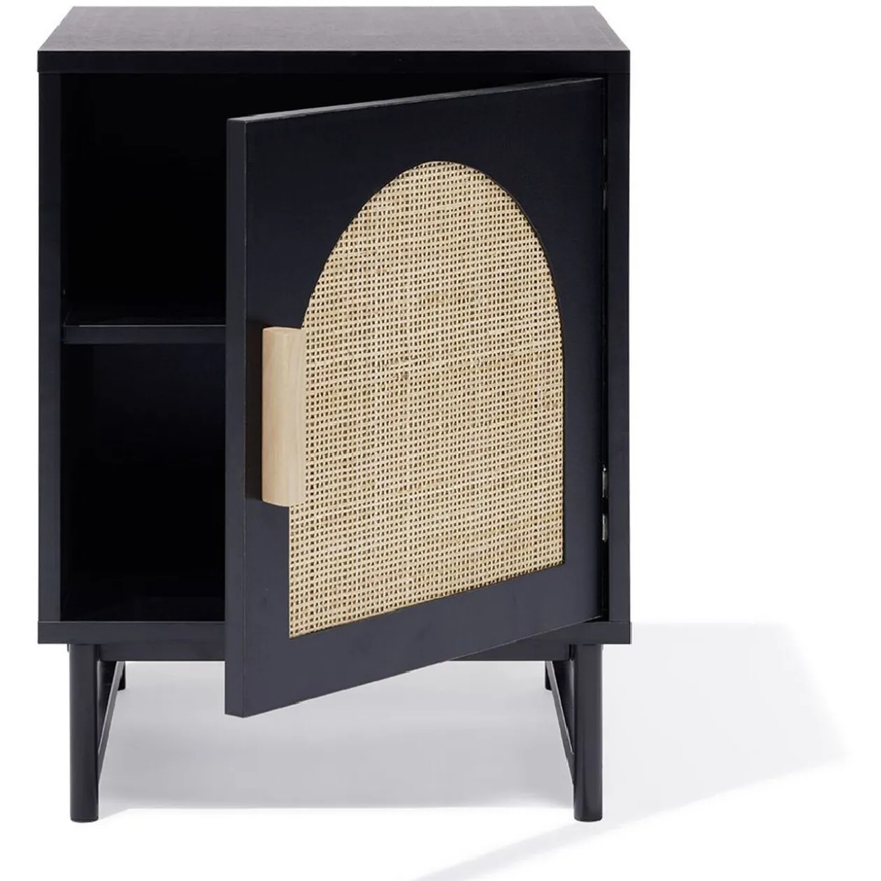 Pour une déco travaillée dans votre espace nuit, optez pour ce chevet Fuji en bois noir et rotin.