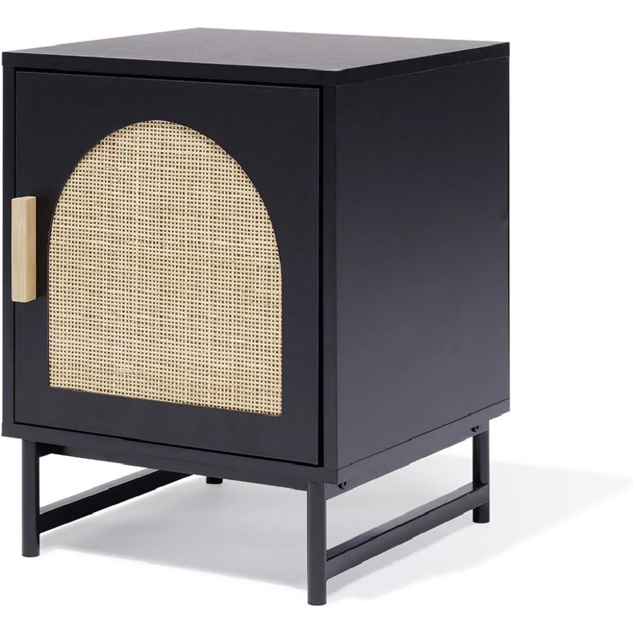 - Matière(s) : panneau de particules, revêtement placage de papier / métal, finition peinture polymère / rotin