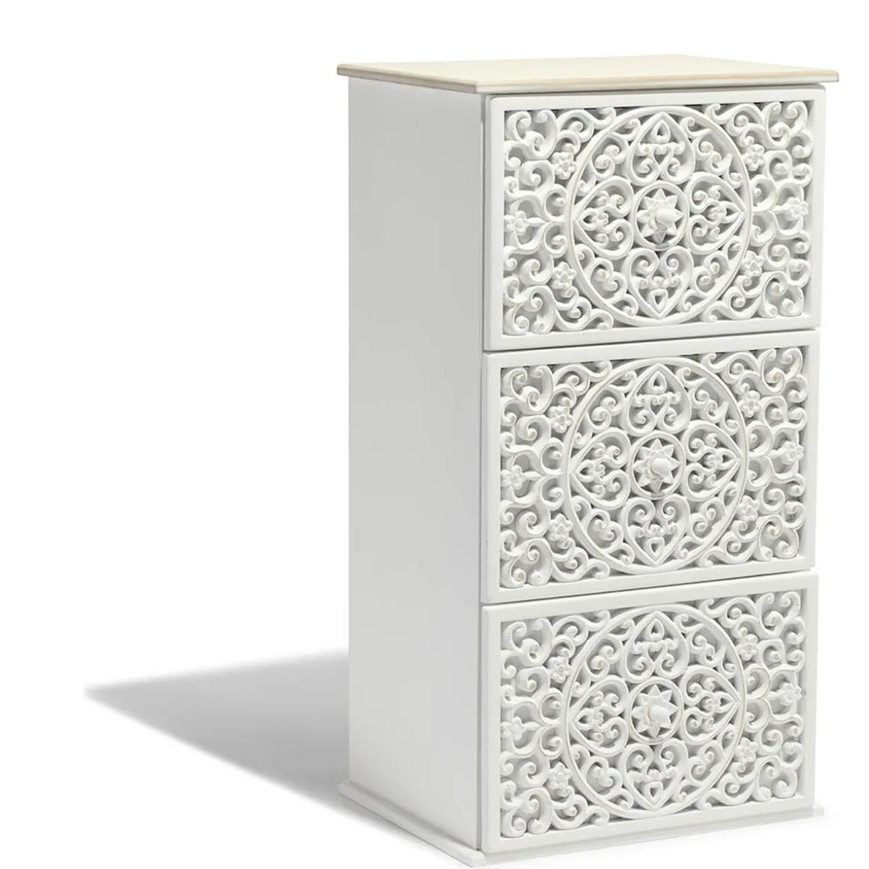 Découvrez notre chiffonnier blanc de la gamme Java, qui se mariera très bien avec le mobilier de votre intérieur. Sa belle couleur blanche lui permet de s’adapter à tous les styles de décoration, qu’ils soient modernes, contemporains ou vintage, ce chiffonnier ira parfaitement avec votre intérieur. Il correspondra fortement à vos envies et ajoutera une touche de design à la pièce de votre choix.Il conviendra aussi bien dans une chambre que dans un séjour. Sa praticité est l’un de ses nombreux avantages. Il détient trois tiroirs permettant de ranger vos affaires. Craquez pour ce chiffonnier aux allures très classes et élégantes. Il embellira votre séjour et fera ressortir votre décoration murale.