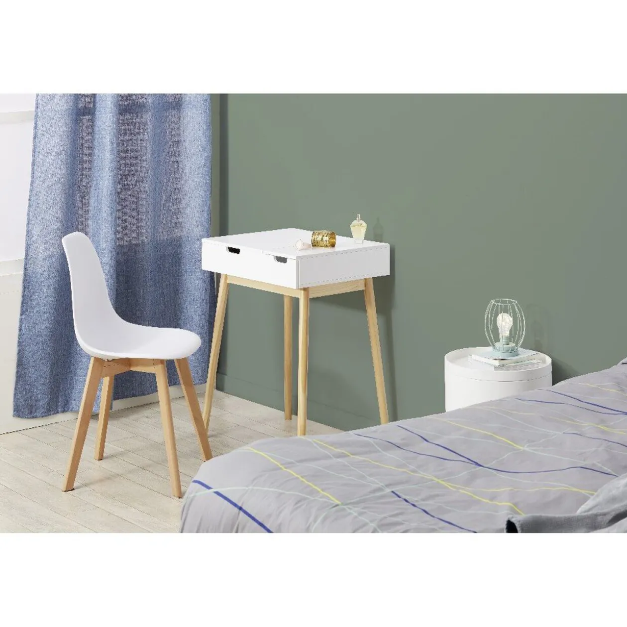 Envie d’une coiffeuse et d’un bureau à l’esprit naturel et scandinave pour votre chambre, ne cherchez plus la coiffeuse et table d’appoint Dehlia sublimera votre chambre tout en vous servant au quotidien! Doté d’un plateau relevable blanc avec miroir, d’un grand compartiment de rangement et d’un tiroir, ce meuble tout en un gardera votre maquillage, vos bijoux et autres objets bien rangés pour une chambre agréable à vivre et ordonnée.