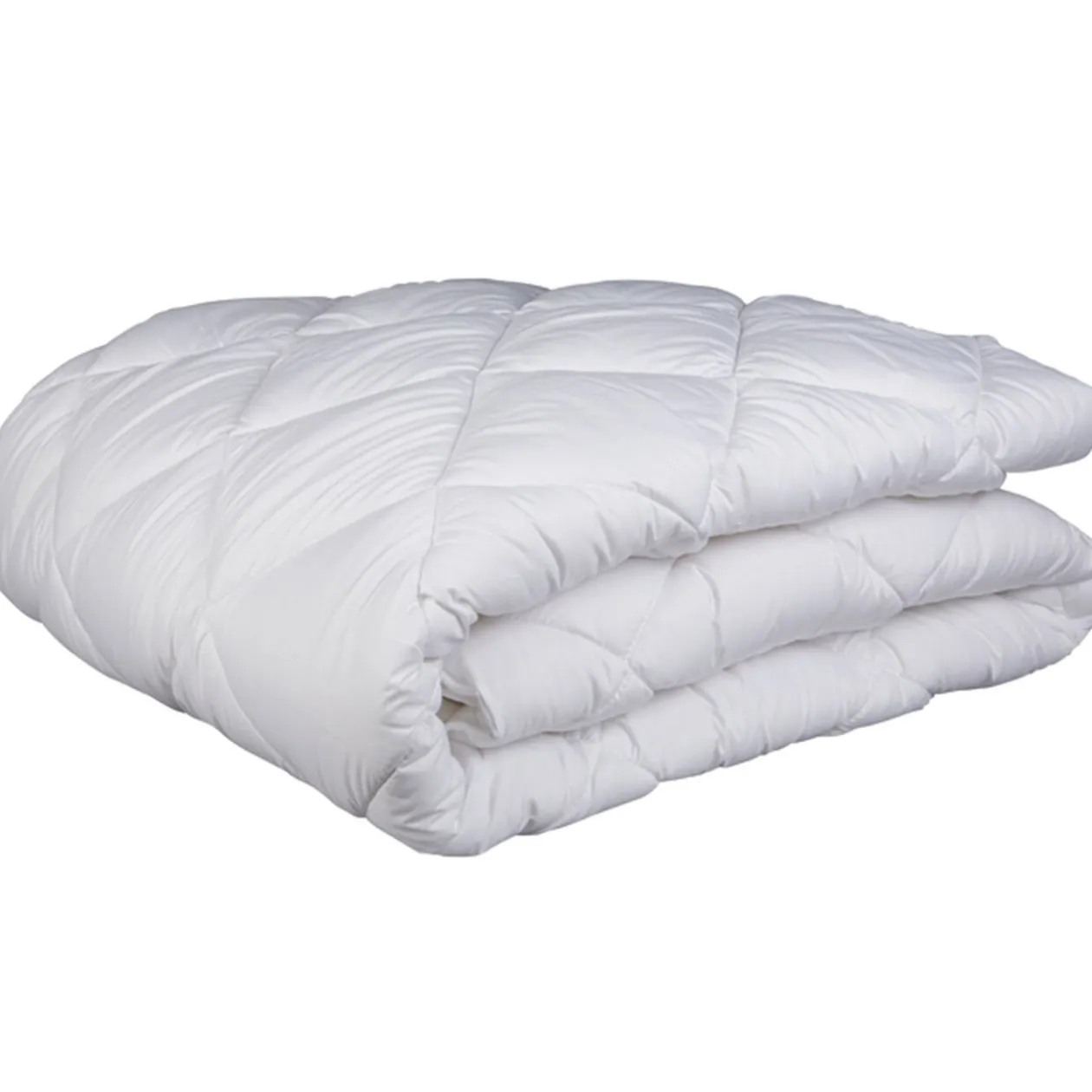 Couette tempérée blanche 350 g/m2, dim. 140×200 cm, enveloppe 100 % polyester microfibre, garnissage 100 % polyester, anti-acariens.