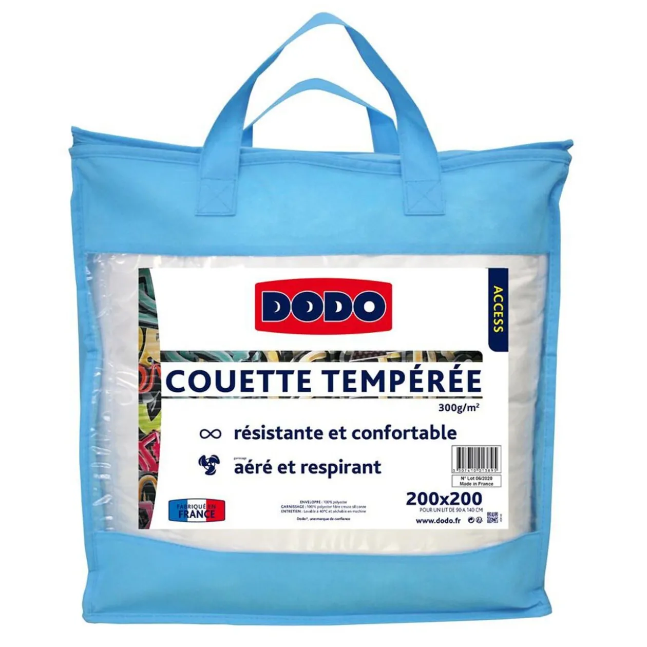 Couette tempérée Dodo de couleur blanche en 200 x 200 cm, fabrication française.