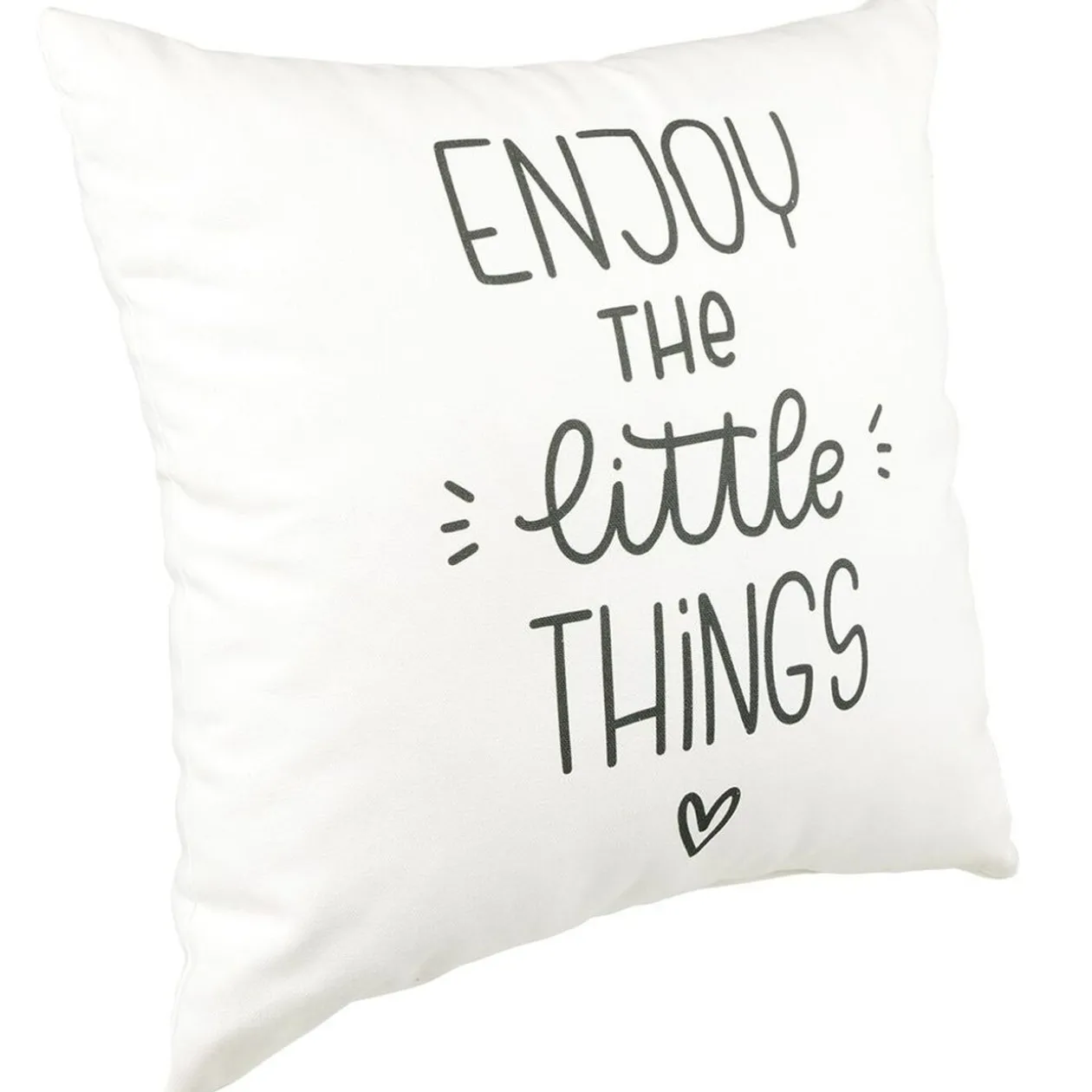 Ce coussin carré blanc avec inscription « Enjoy the little things » sera parfait pour agrémenter votre intérieur.