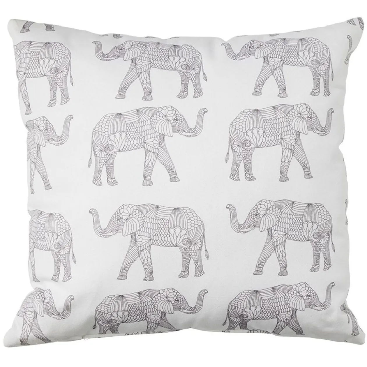 Coussin carré à motif éléphant, idéal pour agrémenter votre intérieur dans le style safari.