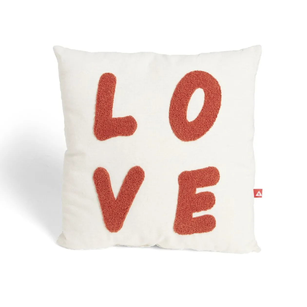 L’inscription « Love » en effet bouclette beige et rouge brique crée une atmosphère conviviale et charmante, parfaite pour embellir votre espace de vie.