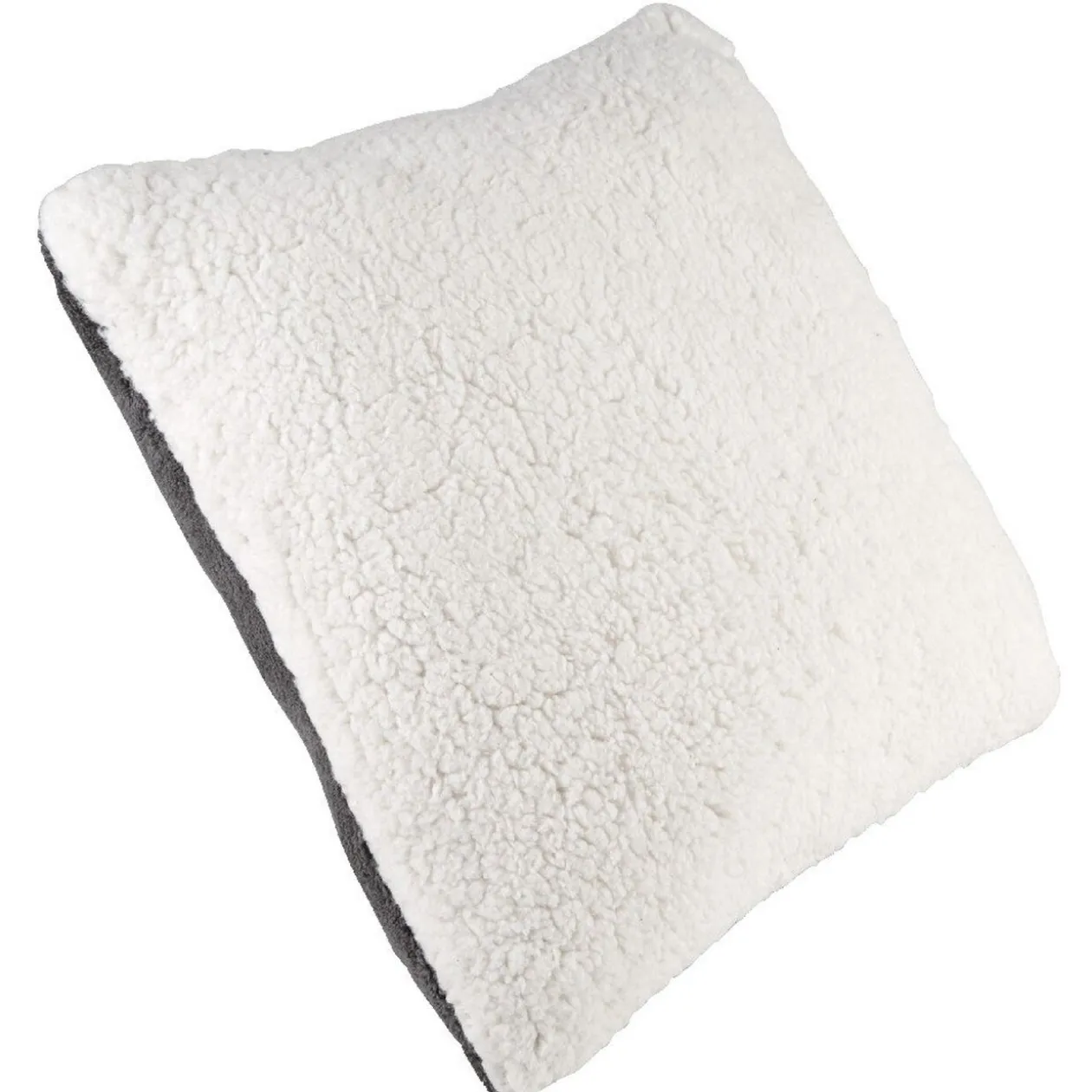 Coussin à double face, 1 grise et 1 blanche, en tissu effet pilou pilou.