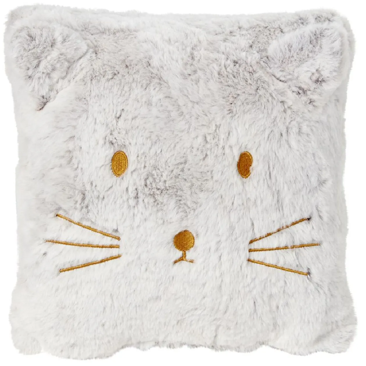 Coussin tout doux design tête de chat de forme carrée avec oreilles en relief.