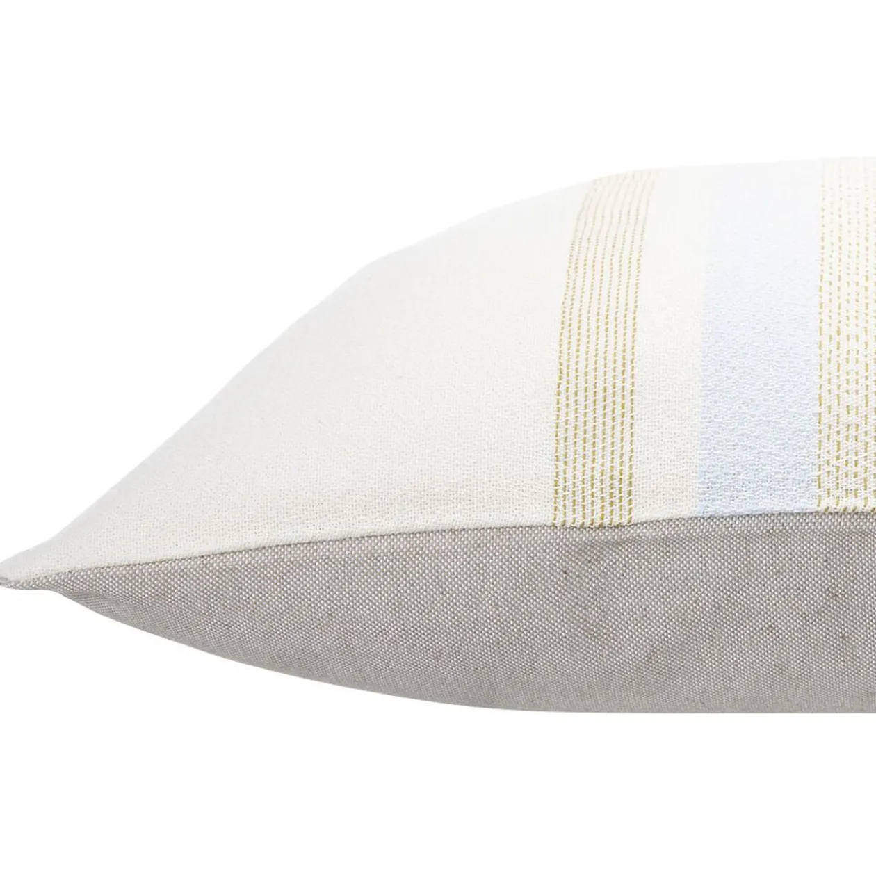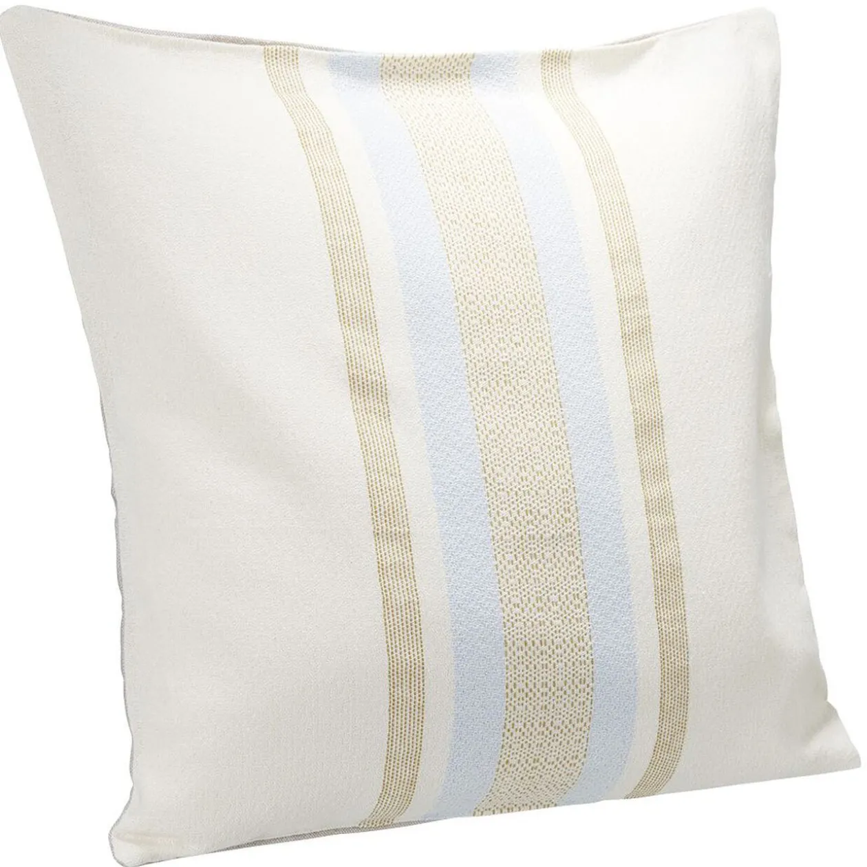 Ce coussin jacquard beige à rayures bleu clair et marron viendra apporter la petite touche finale de décoration à votre pièce.