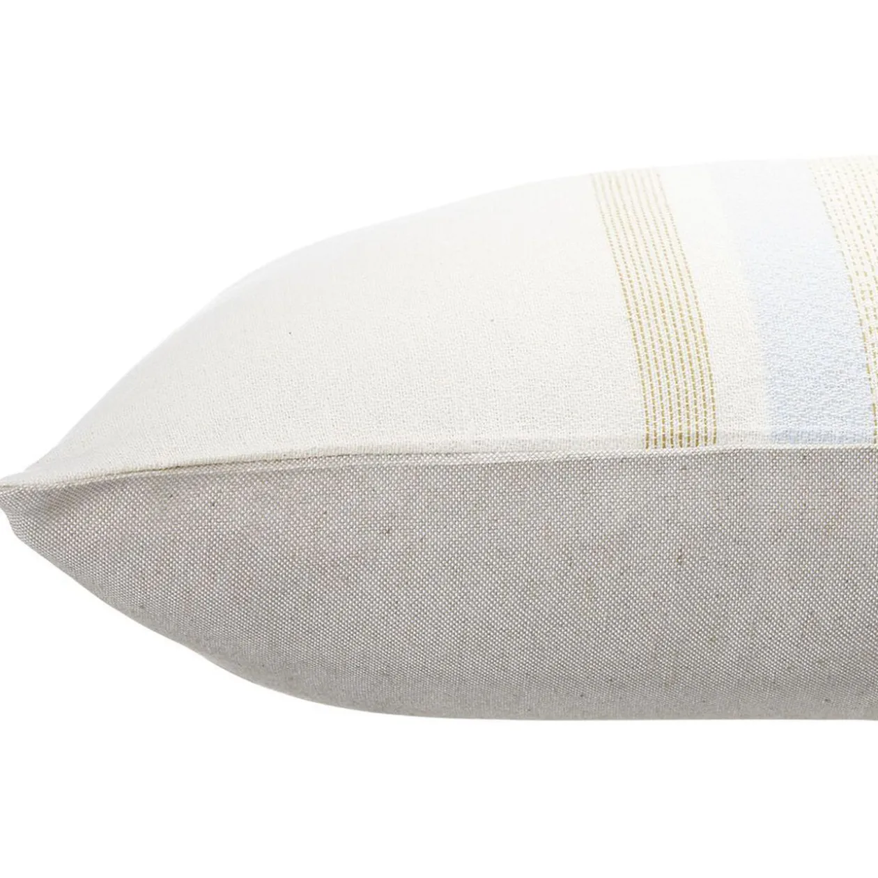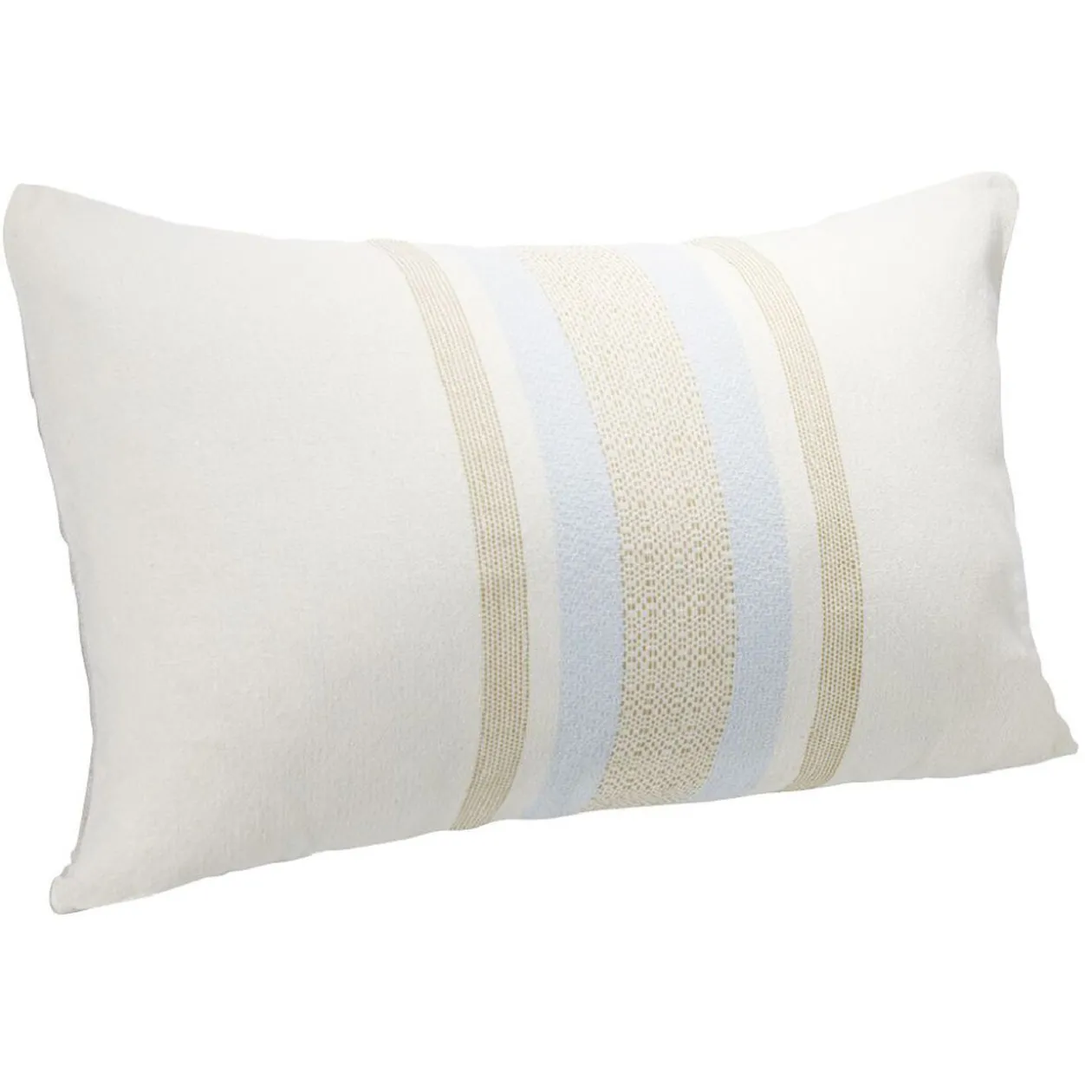 Ce coussin jacquard bleu clair à rayures beiges viendra apporter la petite touche finale à la décoration de votre pièce.