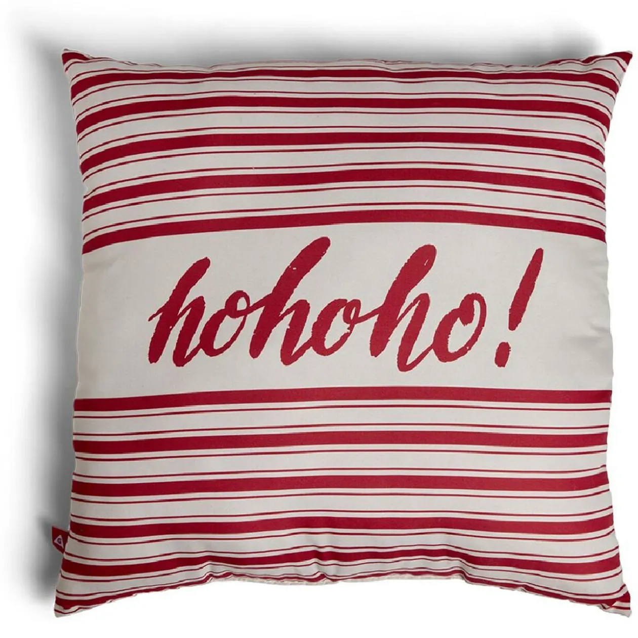 Avec ce coussin rouge et blanc à rayures et inscription HoHoHo, votre décoration sera totalement dans le thème de Noël.