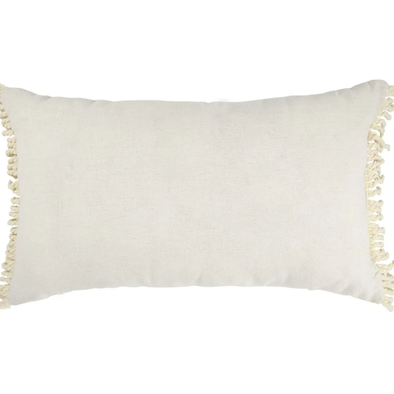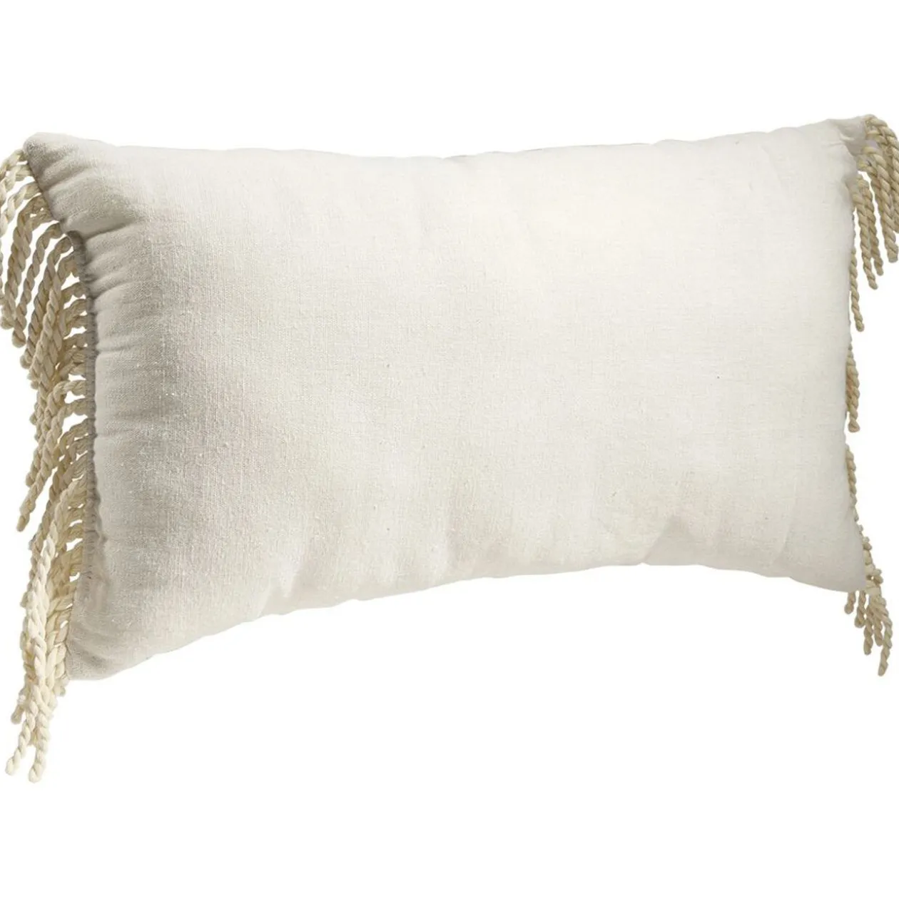 Ce coussin rectangulaire à franges de couleur beige apportera une ambiance conviviale et chaleureuse à votre intérieur.