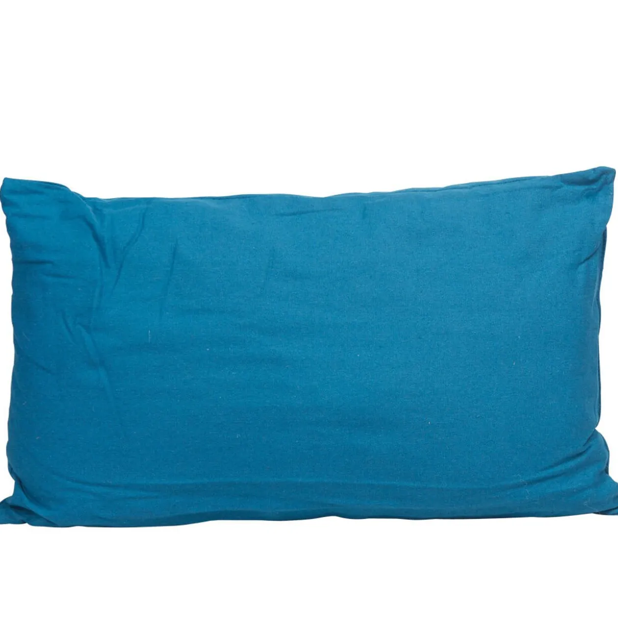 Coussin rectangulaire uni bleu canard en coton et polyester.