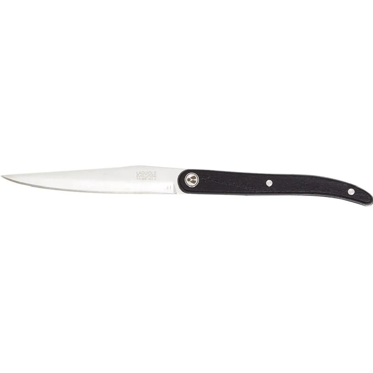 Couteau à steak Laguiole en inox avec manche de couleur naturel ou noir. Disponibilité selon stock en magasin.