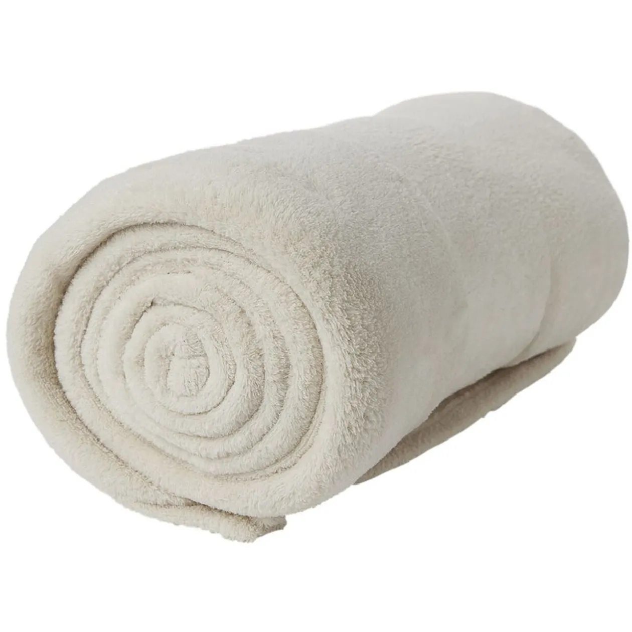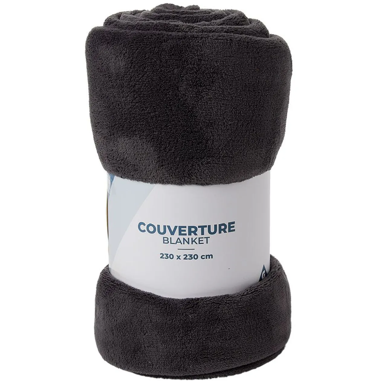 Couverture toute douce unie grise ou beige pour lit 2 personnes.