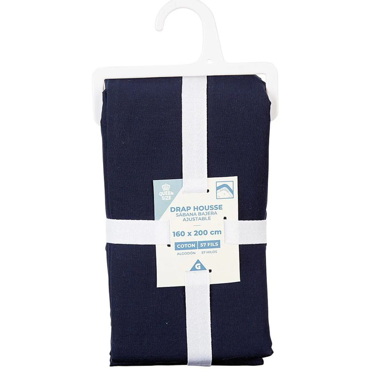 Drap housse en coton bleu foncé 160×200 cm