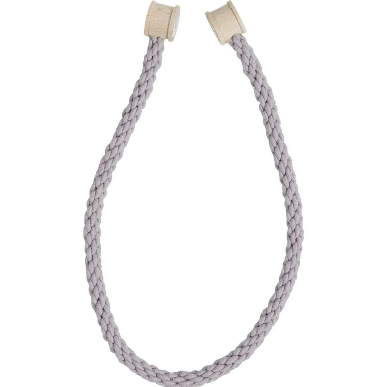 Embrasse aimantée grise avec embout effet bois. Décoratif et pratique pour retenir vos rideaux ou voilage sans percer votre mur.