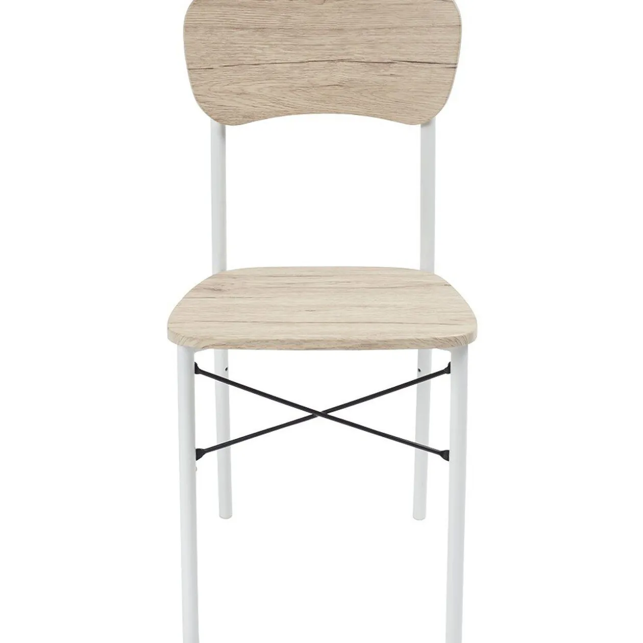 Si vous recherchez un ensemble repas au style rétro et moderne, la table Yvana et ses 4 chaises en MDF (panneau de fibres de bois) naturel et pieds laqués blanc remplira parfaitement son rôle! Son design élégant et épuré s’adaptera aisément à tous les styles de décoration. Idéal pour les petits espaces, le plateau de 110 cm de longueur permet d’accueillir jusqu’à 4 personnes dans une ambiance conviviale et chaleureuse.
