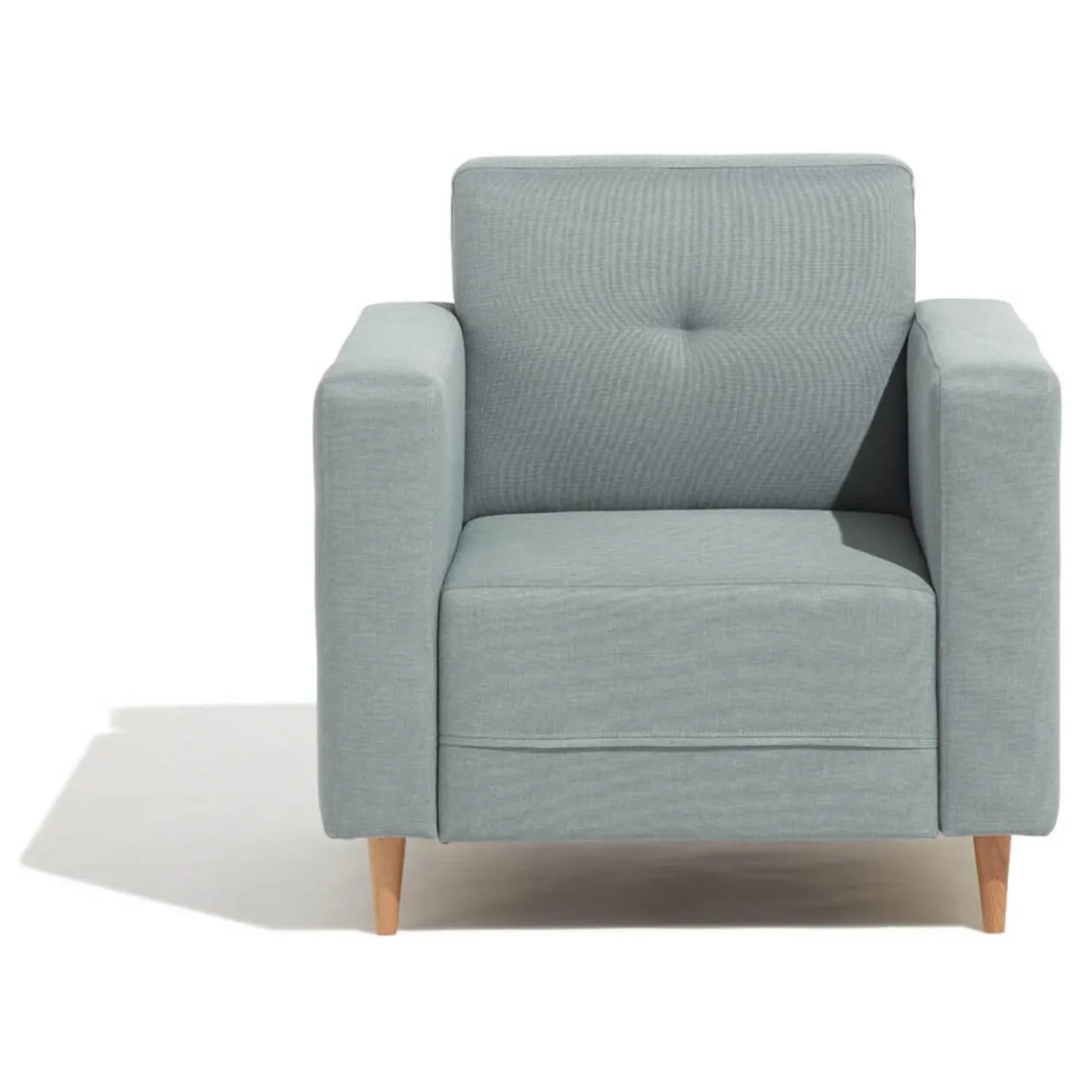 Le fauteuil Richard est un véritable condensé d’élégance. Vous apprécierez ses formes simples et ses lignes droites pour la sobriété et le raffinement qu’elles confèrent à l’ensemble. Sa couleur vert d’eau originale contribue à en faire un meuble de caractère. Placé dans la pièce de votre choix, il viendra y apporter un peu de son style décalé pour en faire un lieu à la décoration unique. Son dossier capitonné, ses accoudoirs hauts rembourrés et ses pieds en bois de hêtre lui apportent éclat et authenticité. Notre astuce déco : alliez le fauteuil Richard à d’autres pièces dans les tons pastel pour une décoration réussie. À vous de jouer !