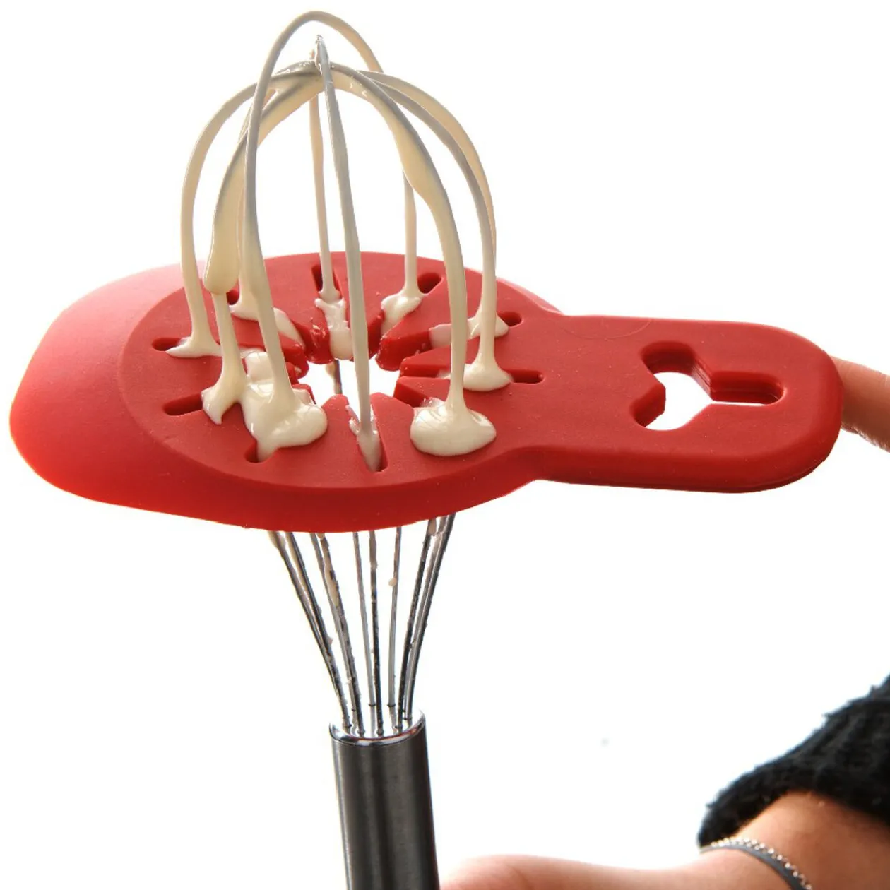 Idéal pour enlever facilement l’excédent ! Ce qui a séché sur le fouet est difficile à rincer. Mais c’est du passé ! Avec ce racloir, vous pouvez facilement racler les restes de pâte, de crème, de flan ou de sauce et continuer à cuisiner proprement. Existe en 3 couleurs (vert, rouge ou violet), couleur aléatoire suivant disponibilité en magasin.