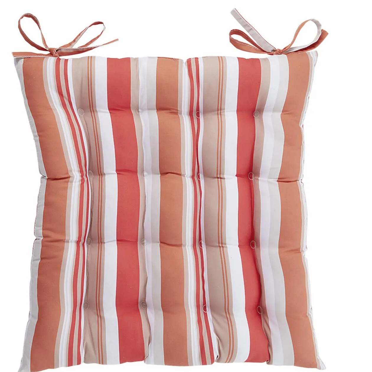Protégez vos dessus de chaises à l’aide de ce lot de 2 galettes motif bayadère orange corail et blanc.