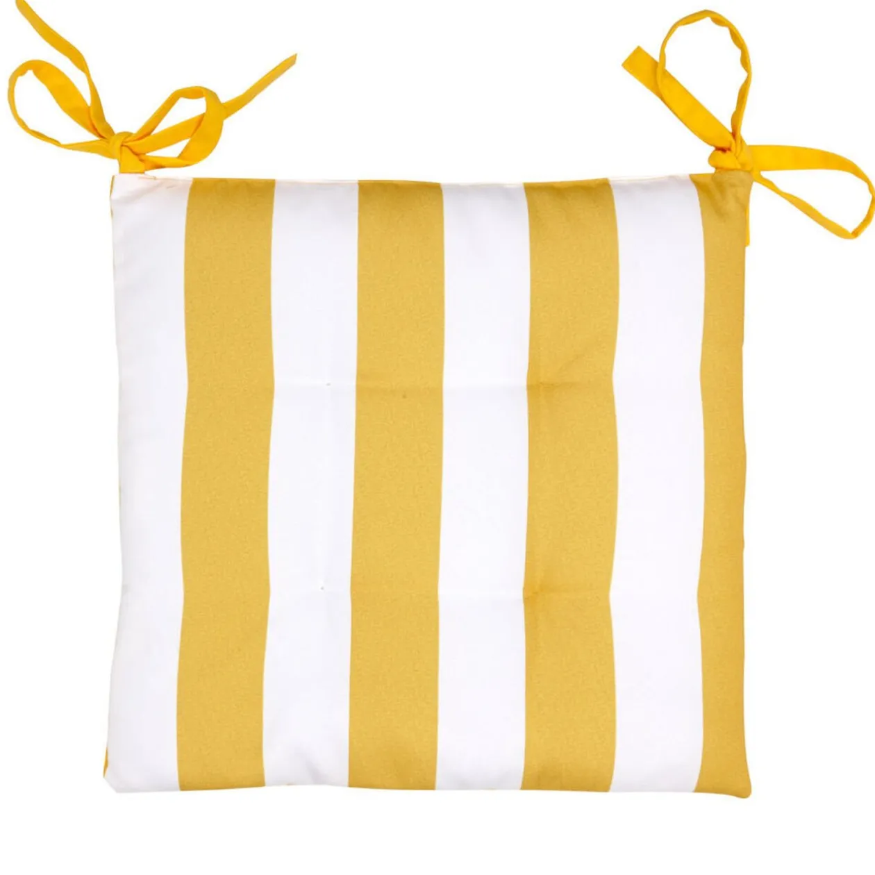 Galette de chaise à rayures de couleur blanche et jaune, dim. 38×38 cm, 100 % coton.