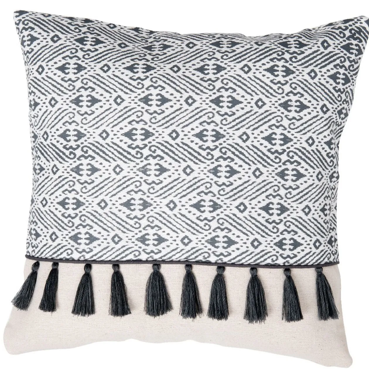 Plaid déco réversible gris bordure rose motif arabesque doux