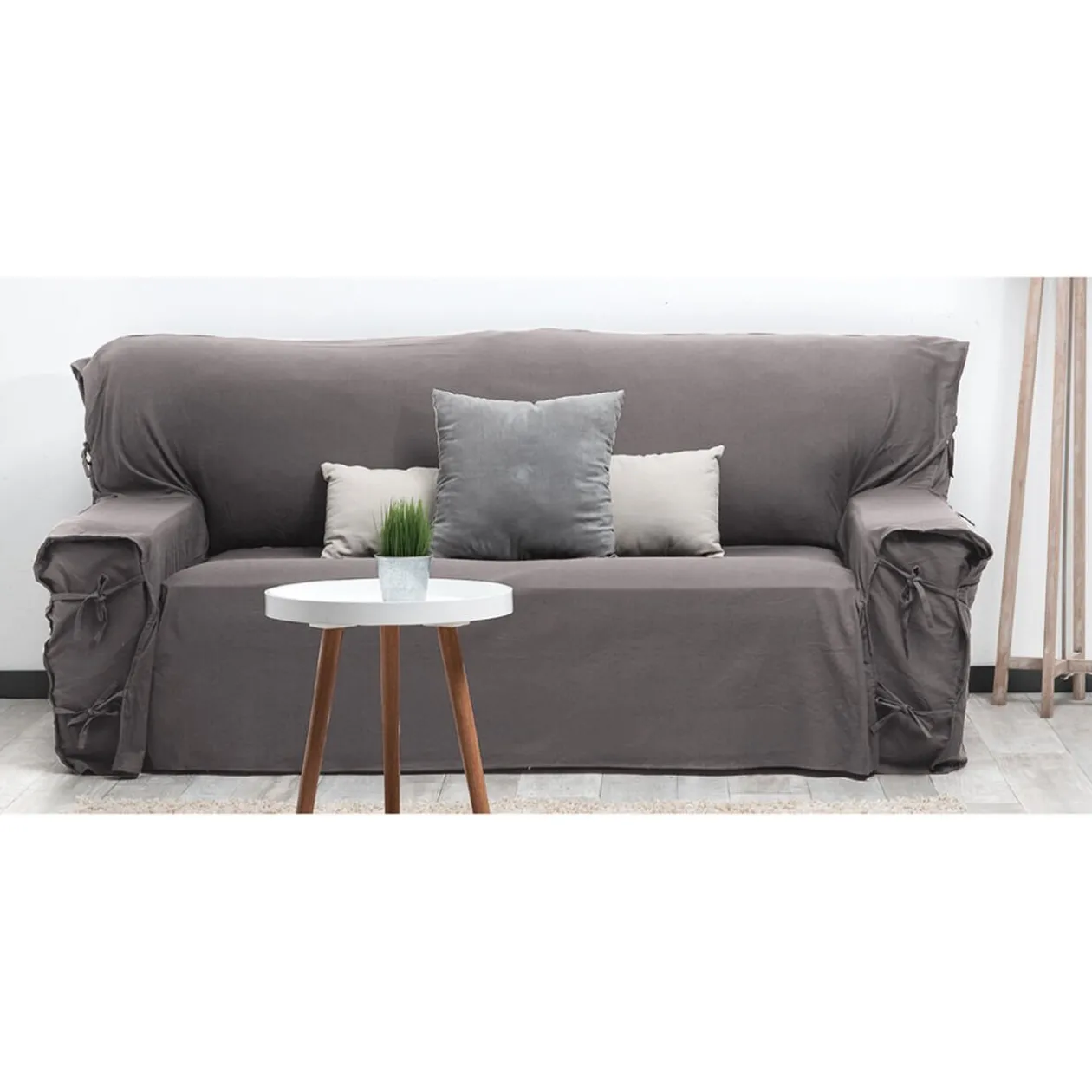 Housse de canapé 3 places gris uni