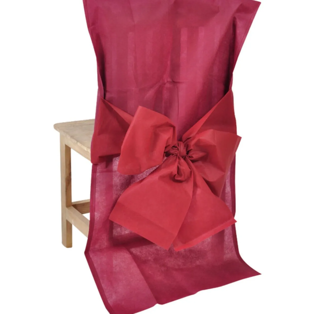 8 housses de chaise avec noeud blanches, dim. 54×93 cm, tissu. Peut s’utiliser en décoration de salle pour mariage, baptême ou autre évènement.