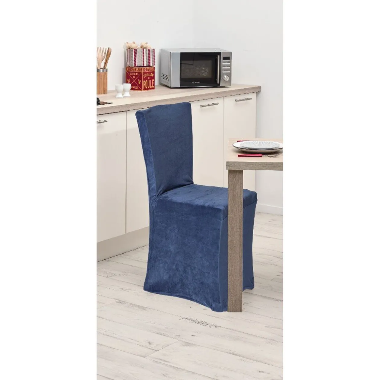 Housse de chaise elastique couleur uni en velours.