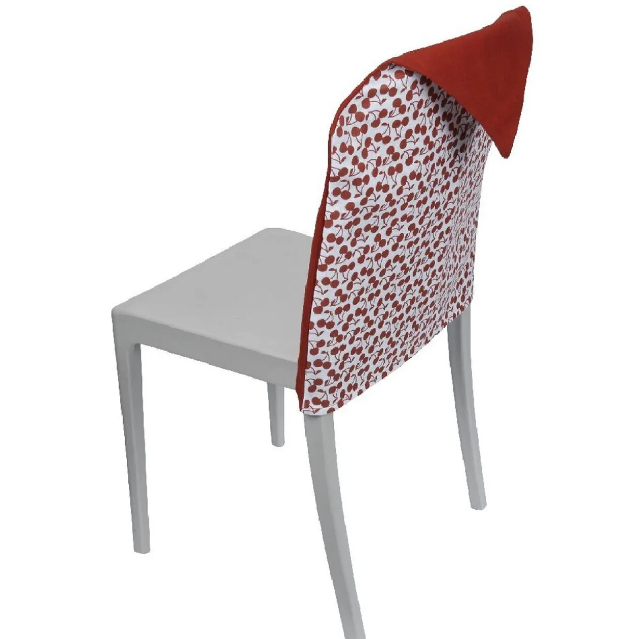Cet ensemble de 4 housses de chaises au design biface uni / motif cerises est idéal pour créer une jolie table à l’esprit guinguette !