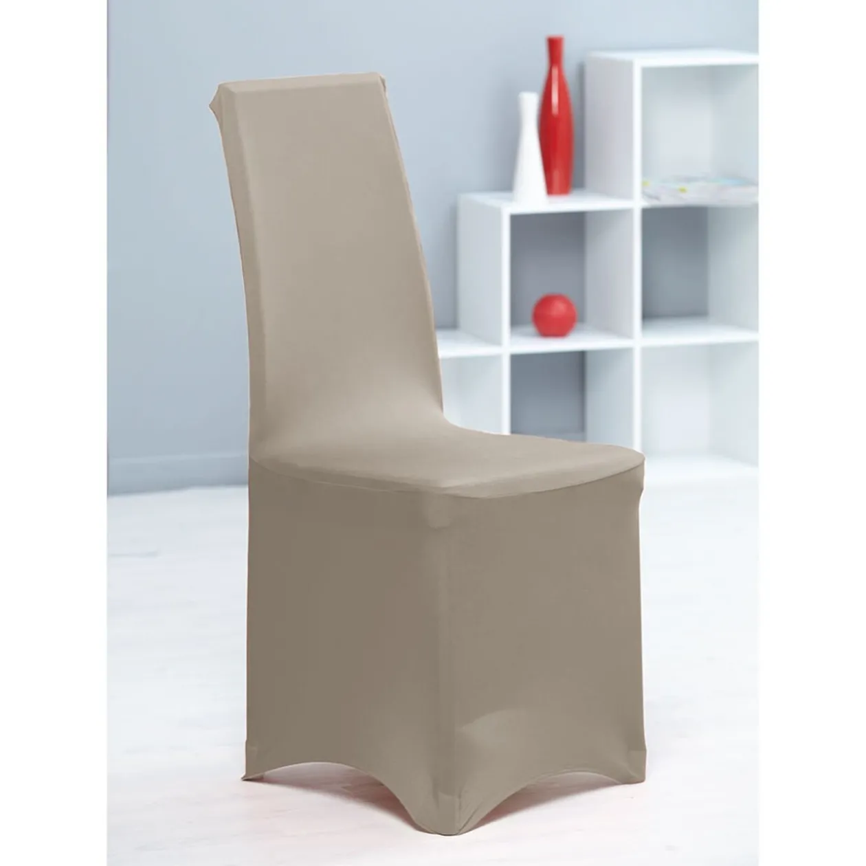 Housse de chaise de couleur taupe.