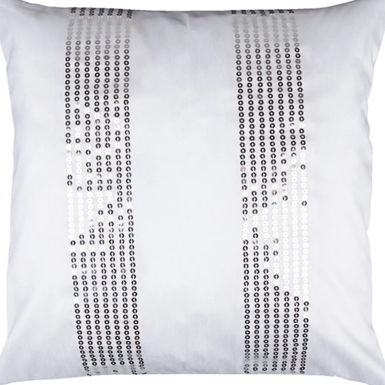 Housse de coussin blanche unie design sequins argentés, dim. 40×40 cm, polyester.