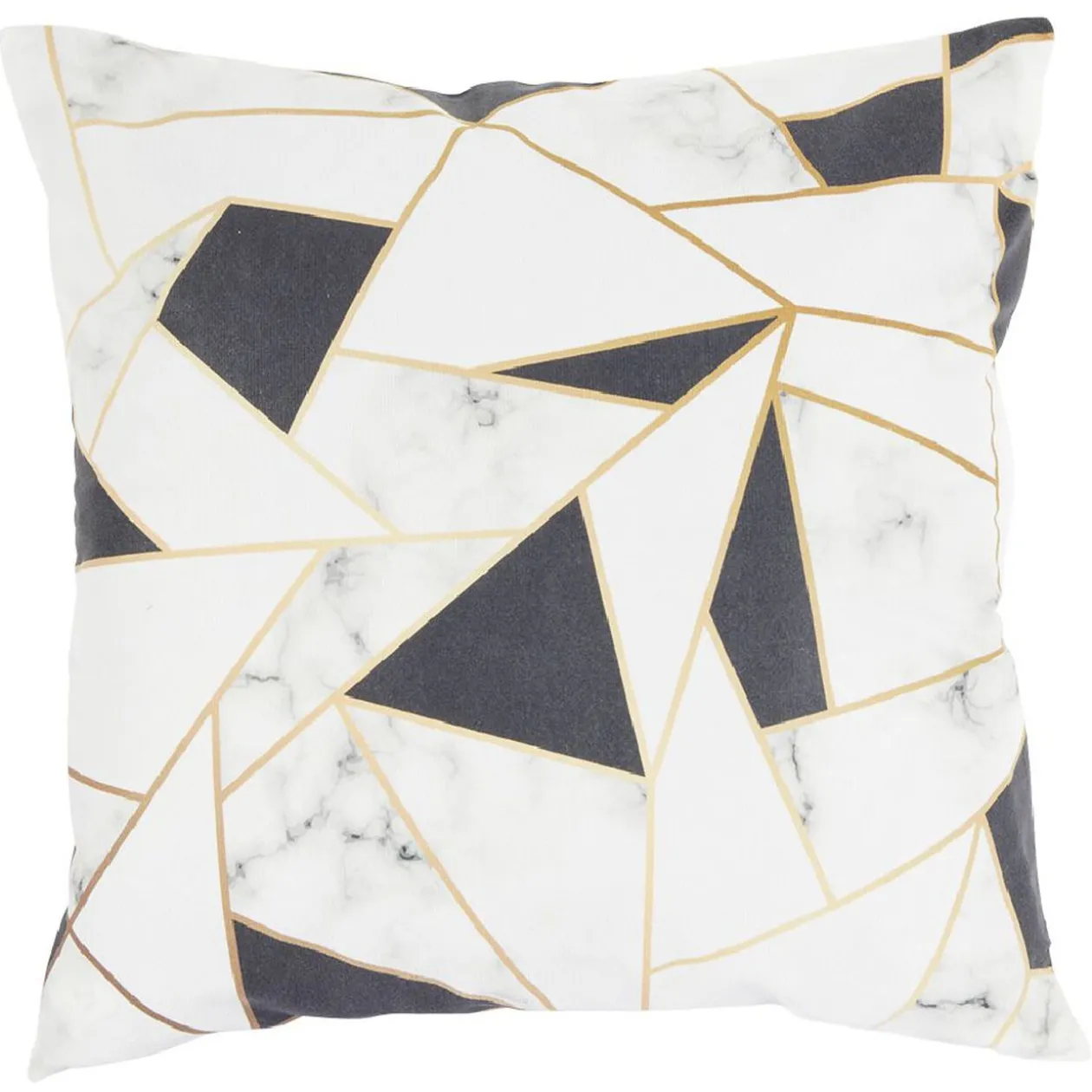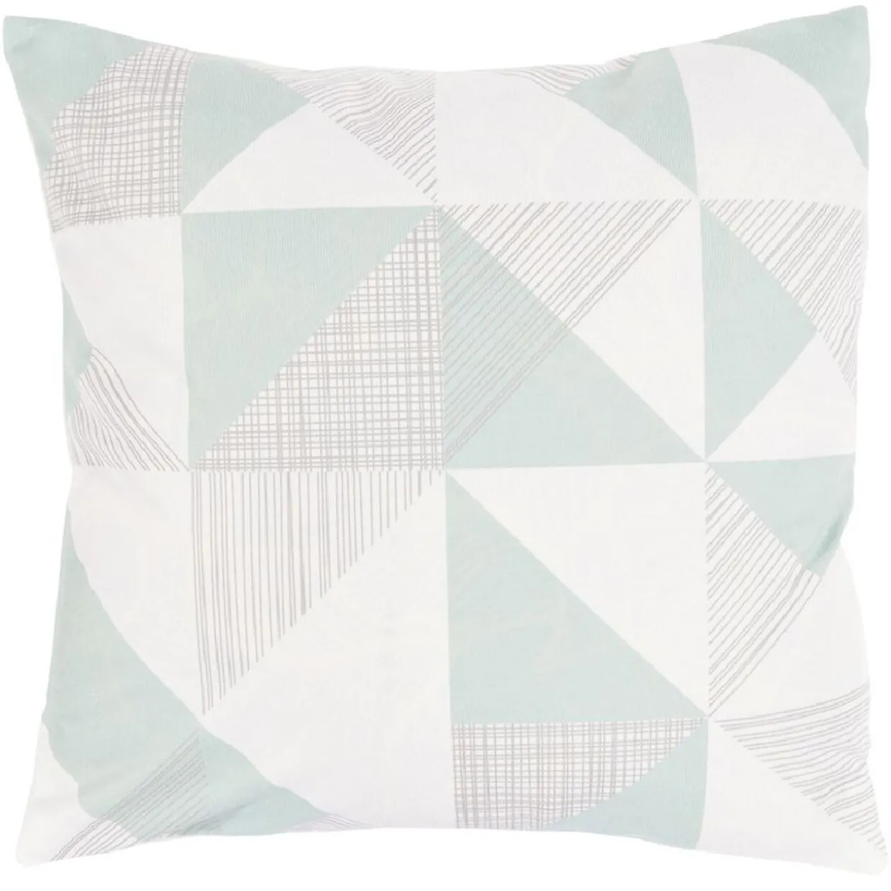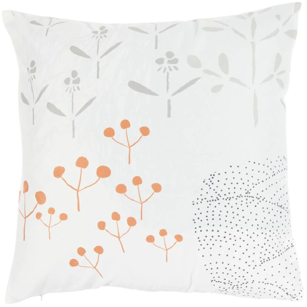 Housse de coussin carrée avec différents motifs imprimés.
