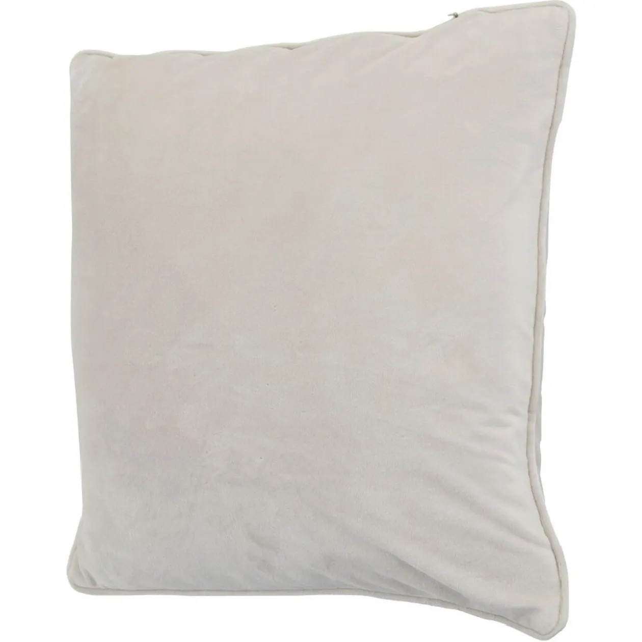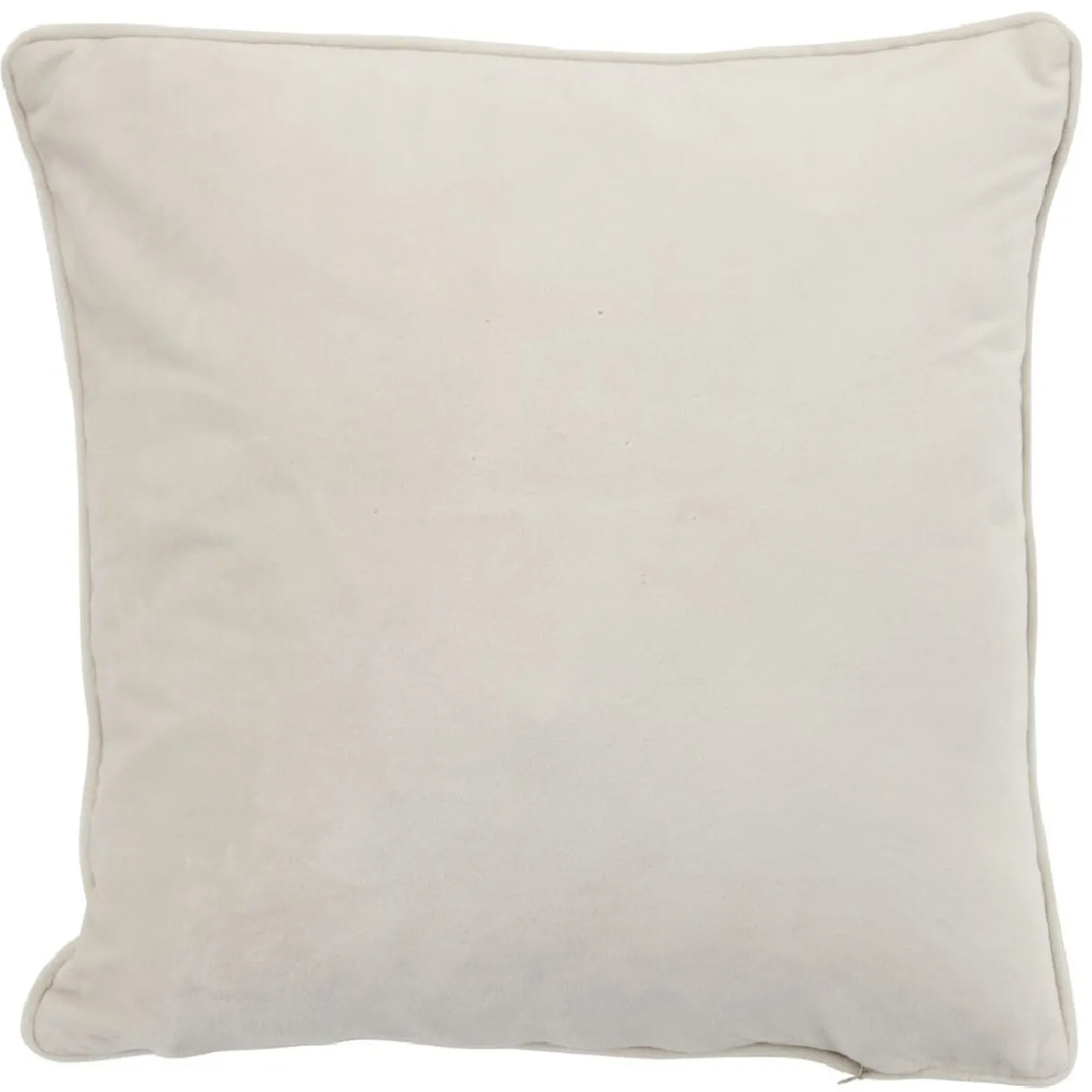 Housse de coussin carrée imitation velours de couleur beige.